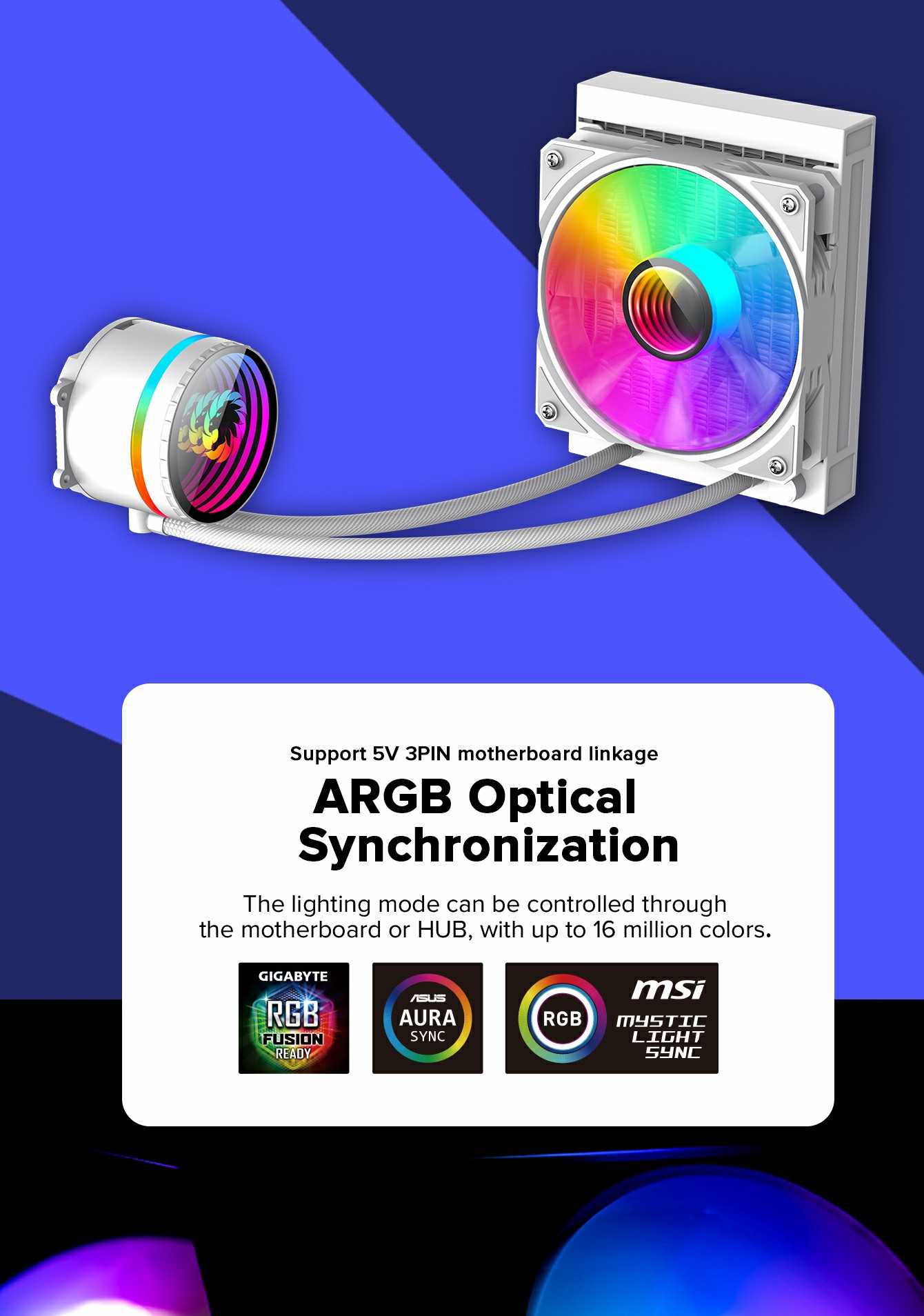 • ARGB addressable LED light via motherboard SYNC or HUB controller