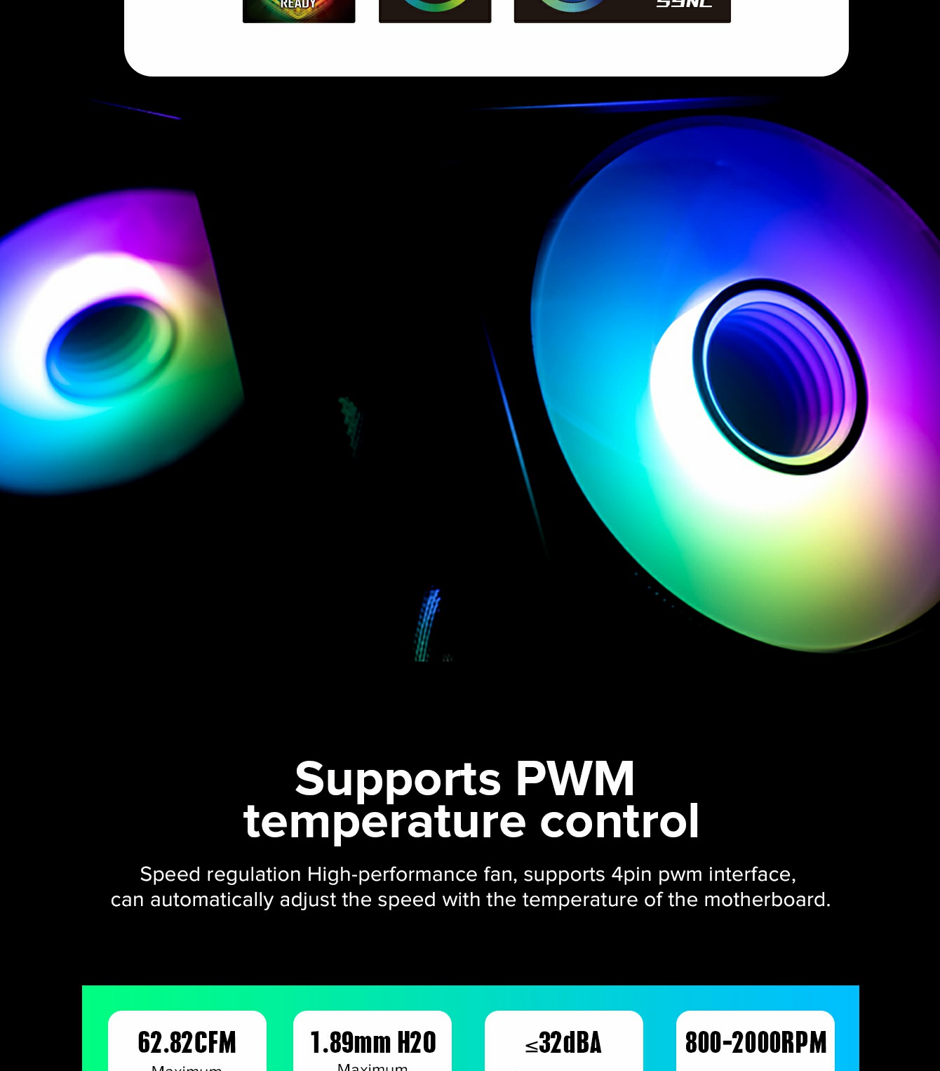 • SYNC Rainbow addressable LED light via motherboard or HUB controller
