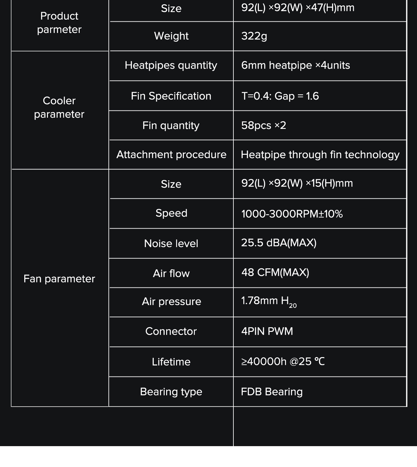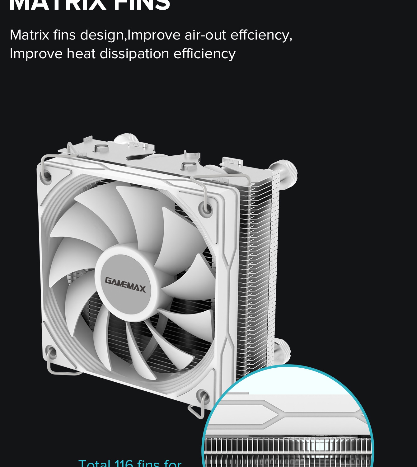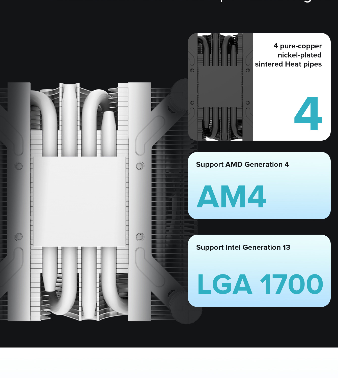 【4 Copper Heat-pipes】The 4x6mm Pure copper and vacuum heat-pipes of this CPU Cooler for can directly connect to the CPU