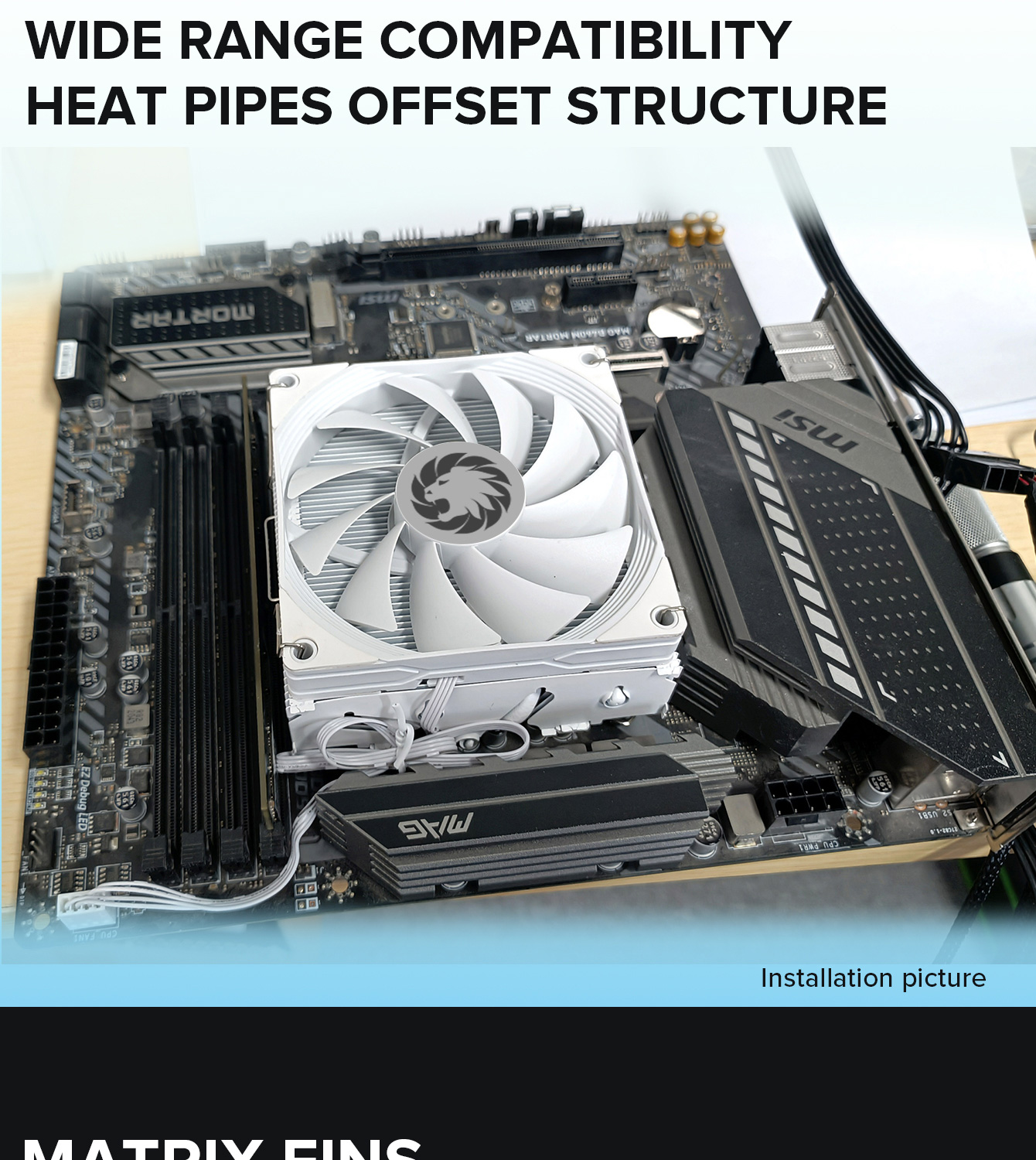 【Fins Bending Technology】The fins of this CPU Cooler adopt the bending technology that contributes to the good ventilation and heat conduction ability between the fins