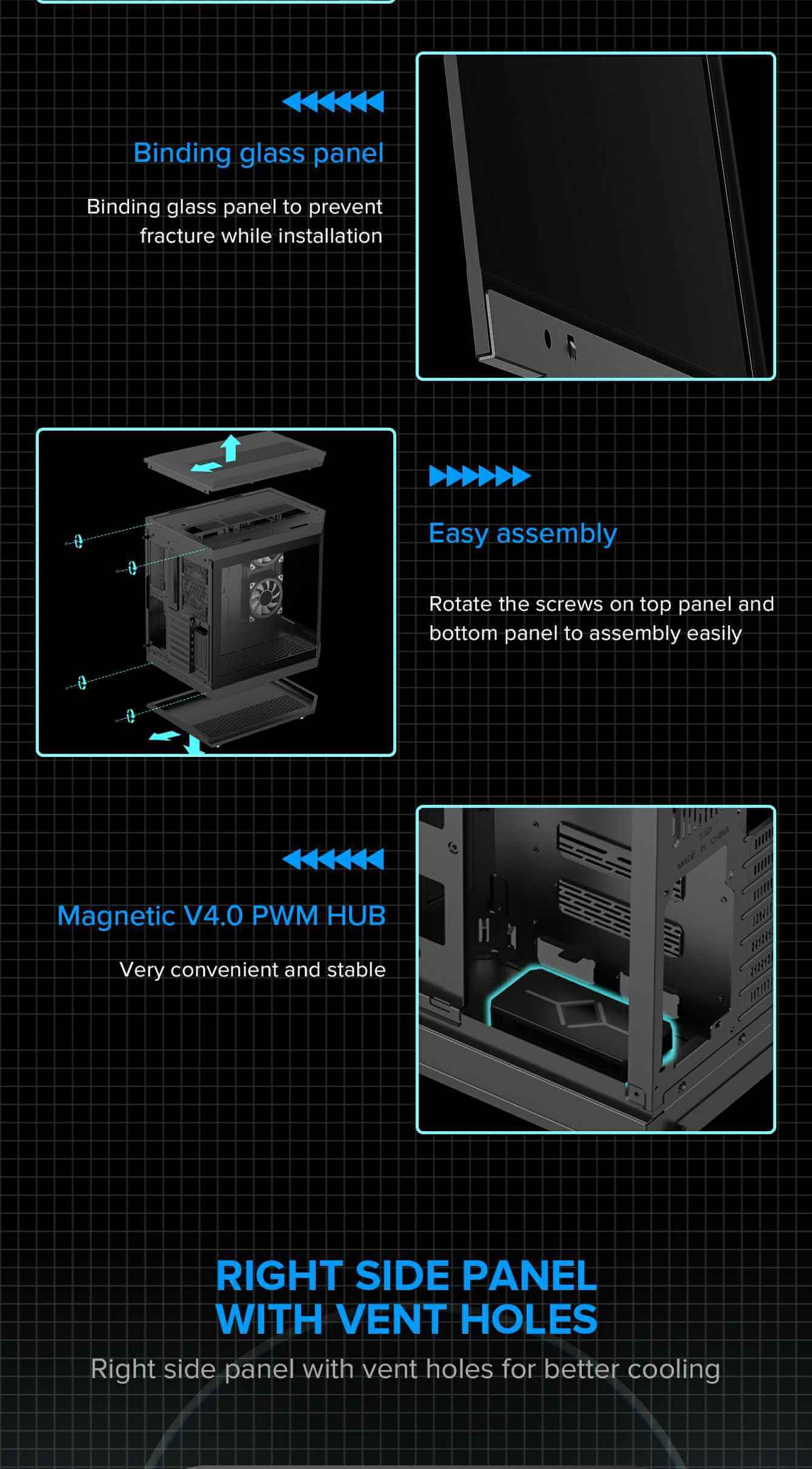 | RGB Controller | 1x V4.0 PWM ARGB HUB,Remote and Manual | |