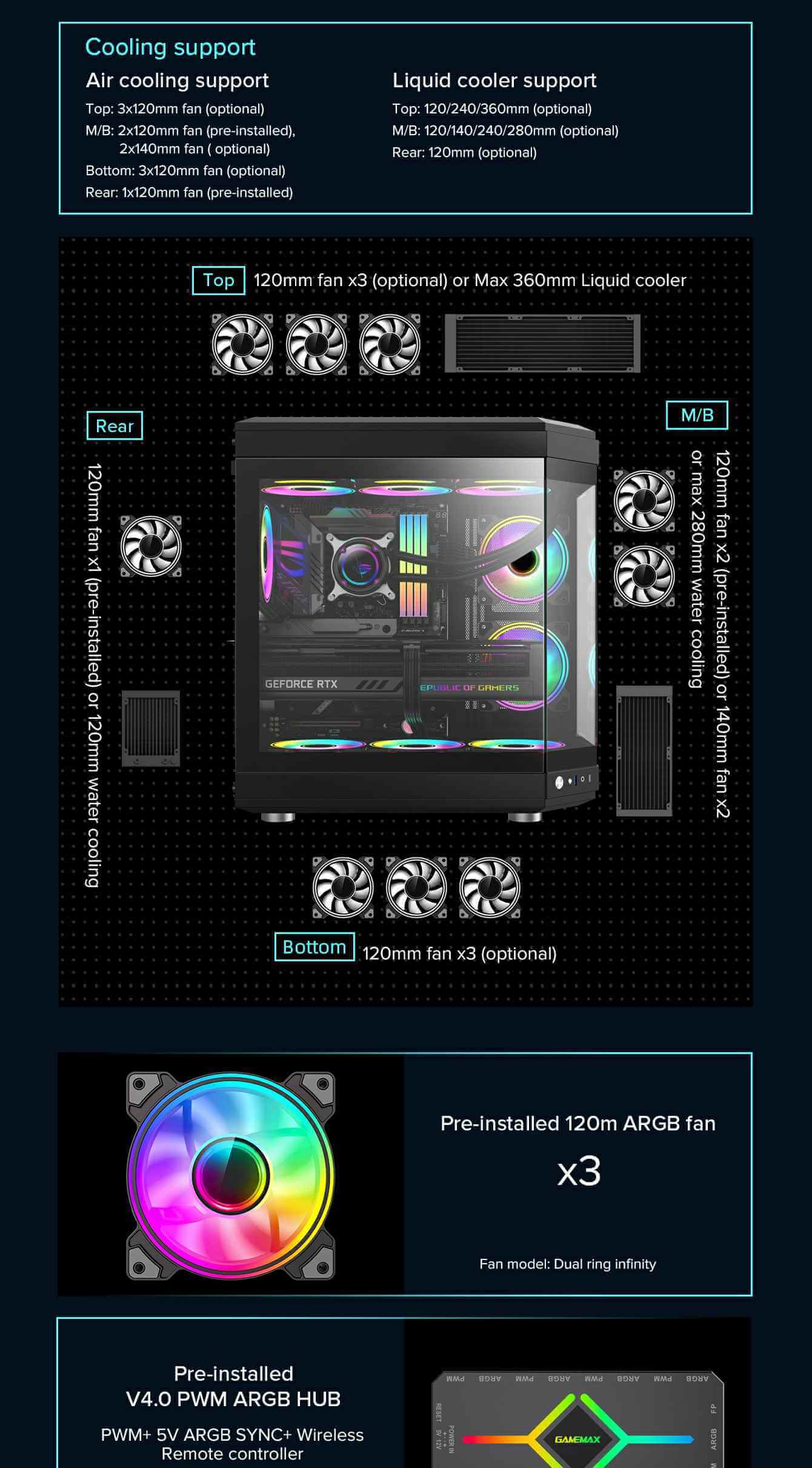 | Right Side | 120mm*2 (Dual Ring Infinity) | |