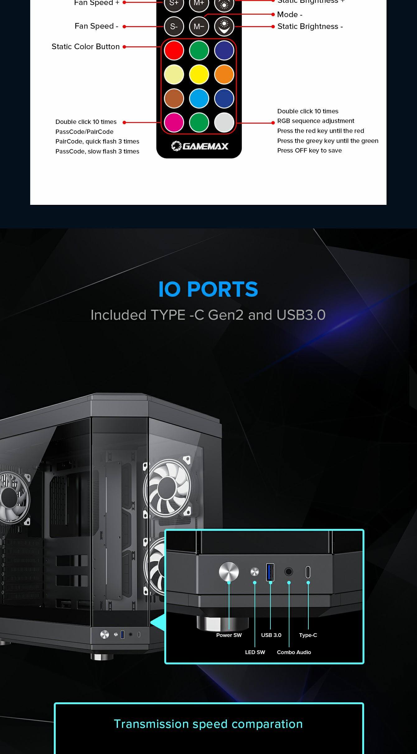 | Fan Controller | 1x V4.0 PWM ARGB HUB,Remote speed adjust | |