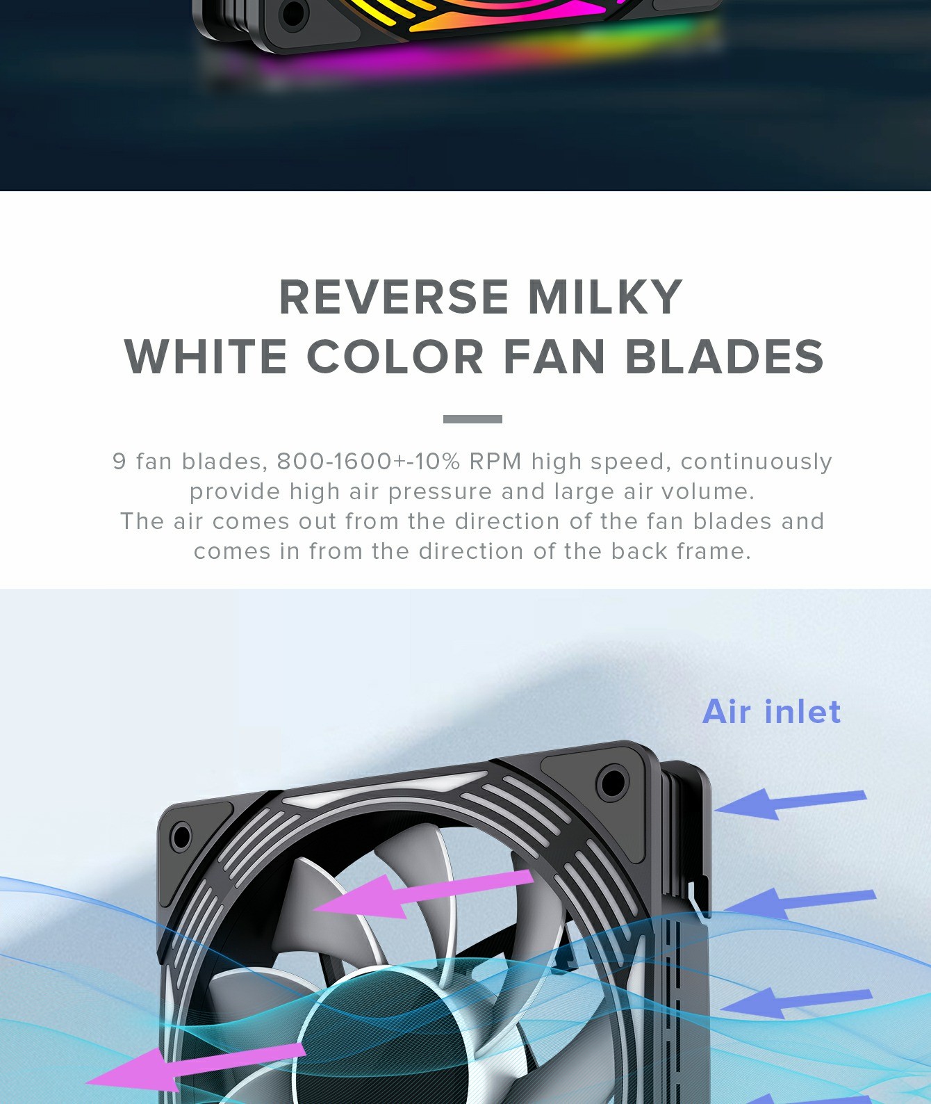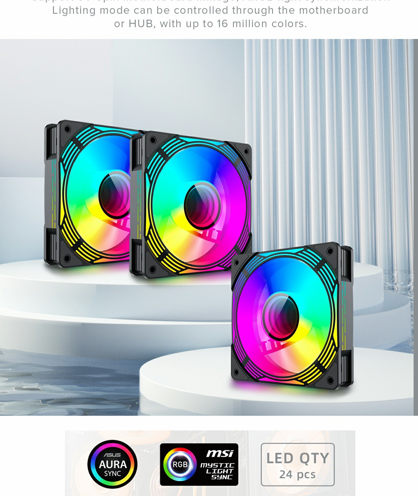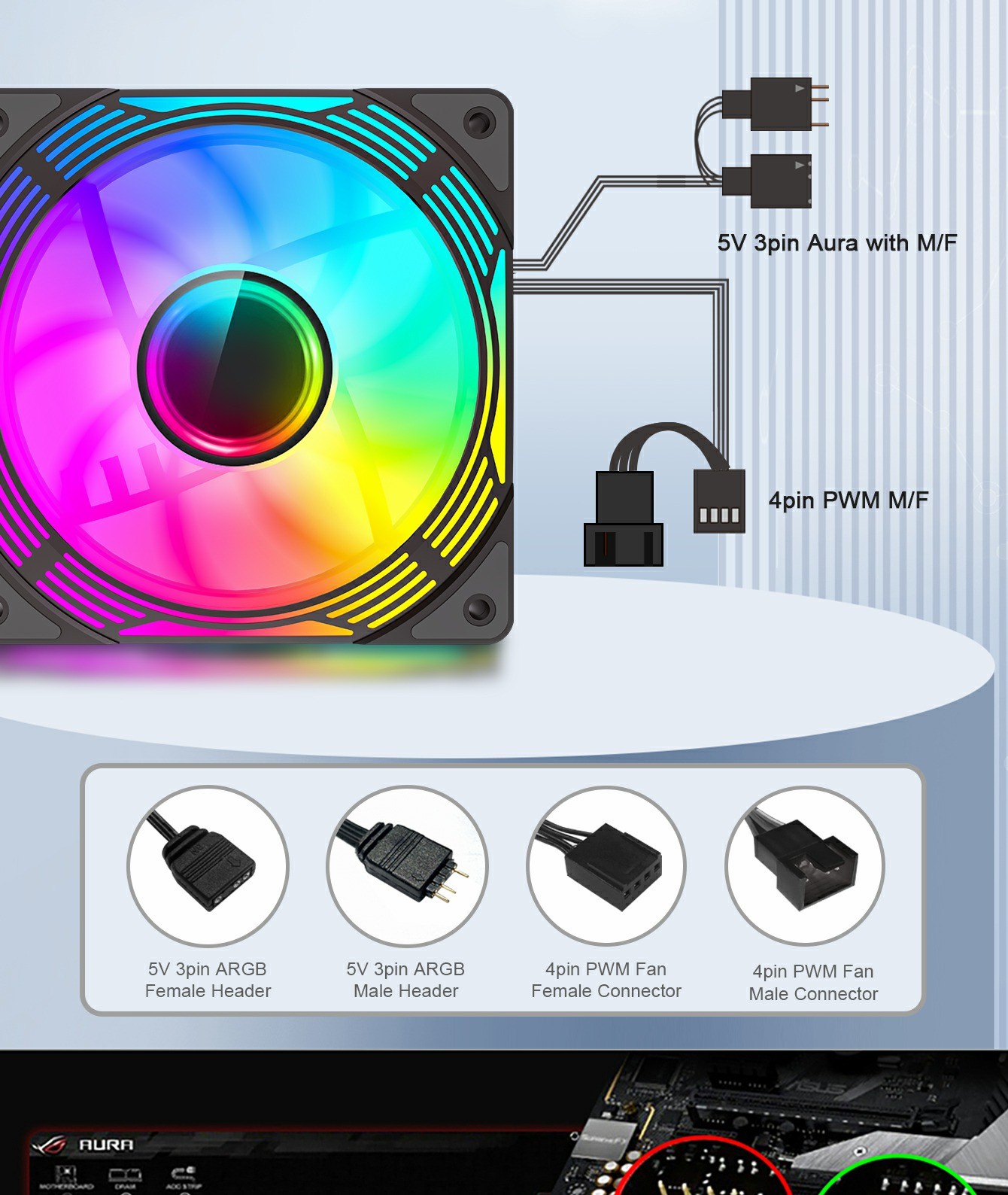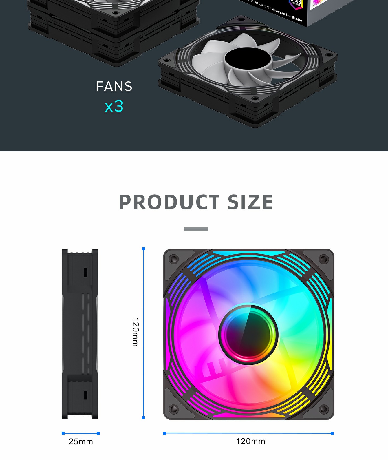 • 【Intelligent Speed Control】3 pcs 120mm full function ARGB PWM fans