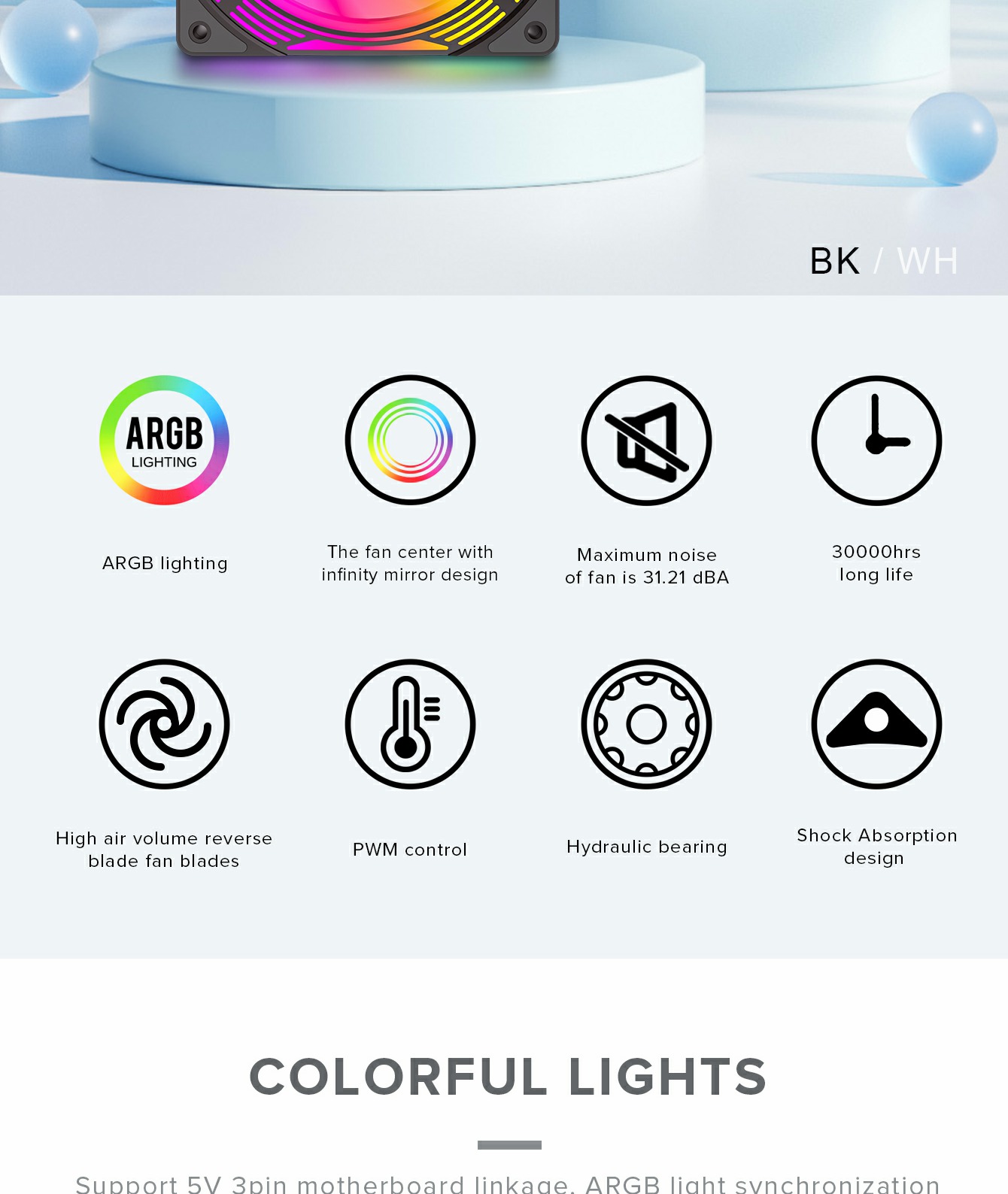 • These fans are 3pin 5v ARGB connectors that connect with ARGB control HUB one by one