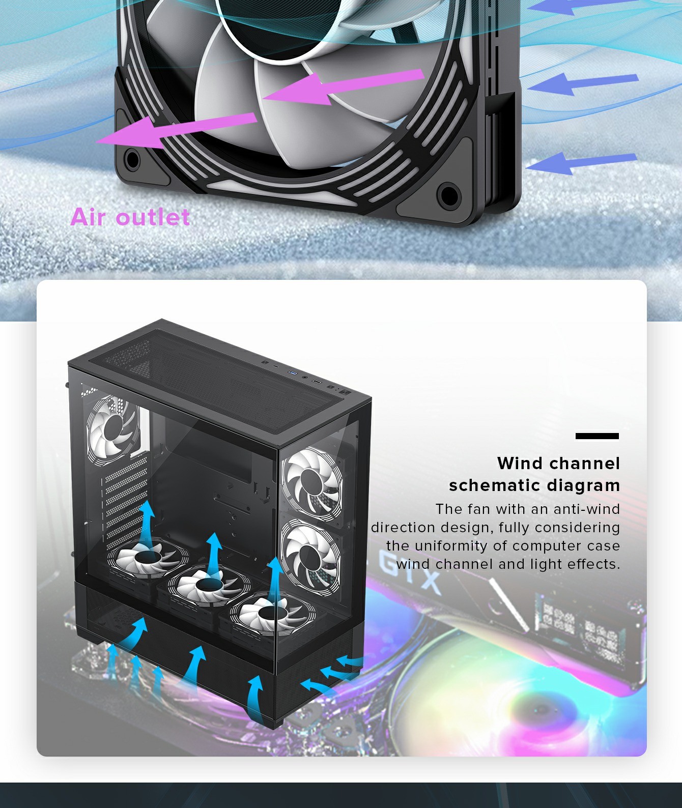 • 【Reverse Blade of Fan】 Reverse Fan Blade for Power Supply Shroud /Bottom plate of Case for Air Intakes, to additional increase airflow from bottom to vertical chassis design type.