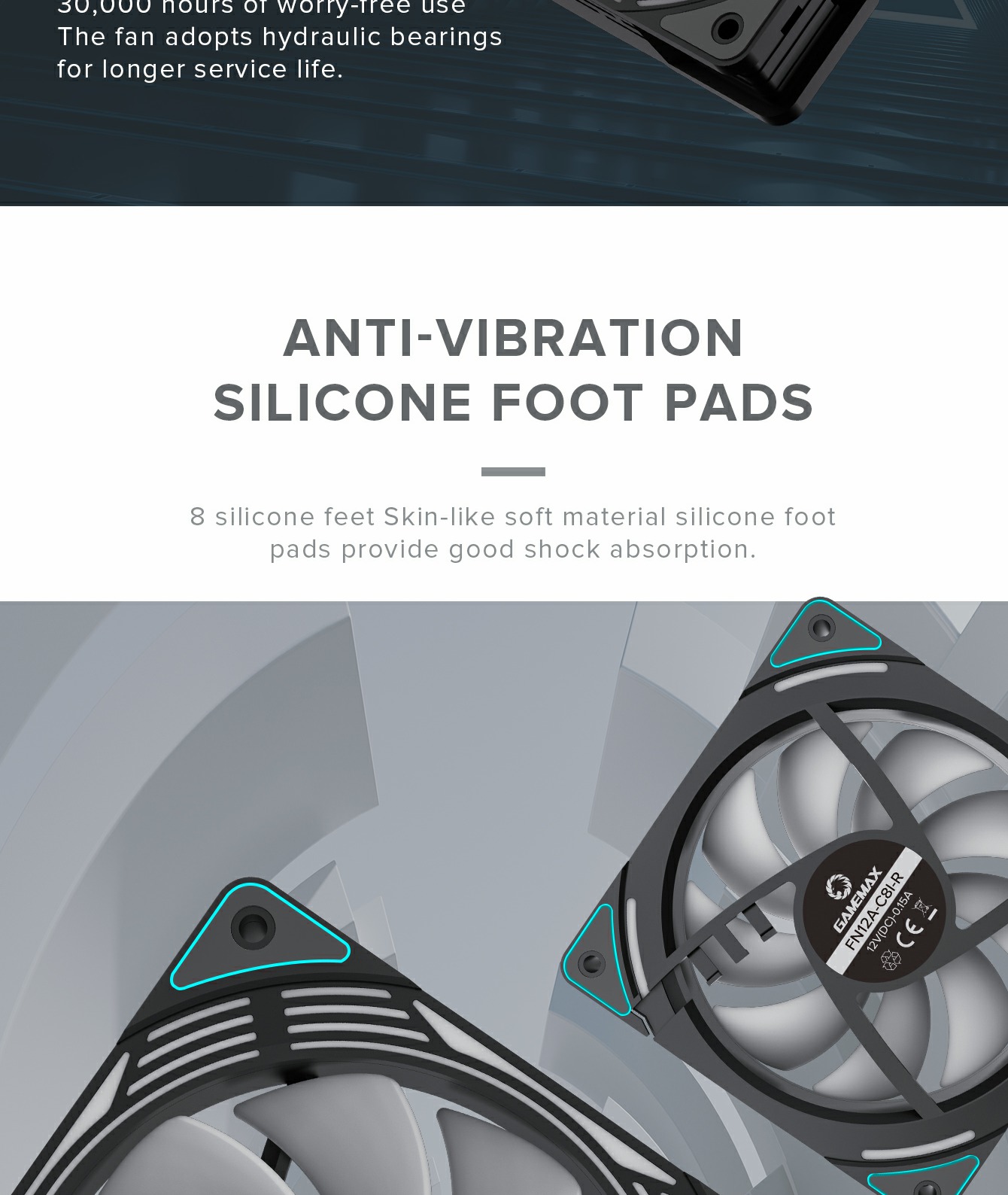 • 【Shockproof Design】The fan frame is fixed on both sides with 8 pieces of shock-absorbing rubber pads
