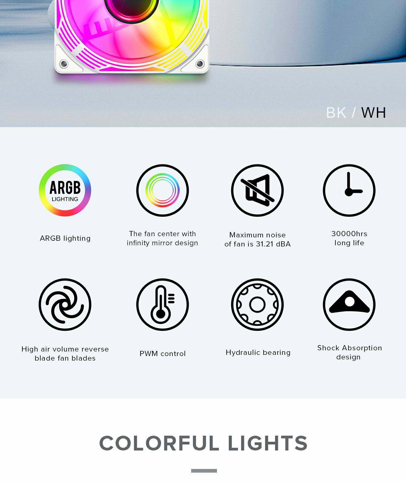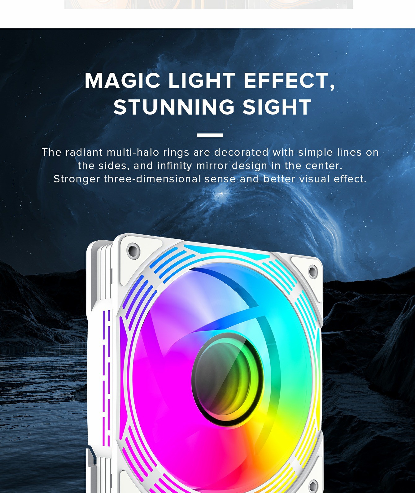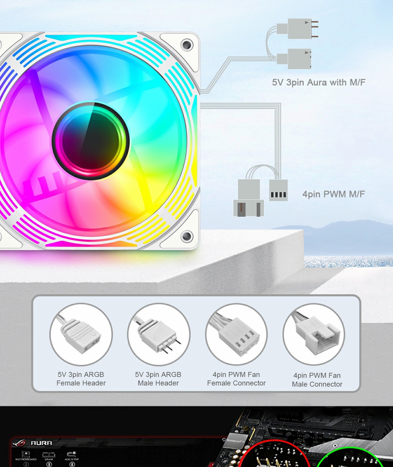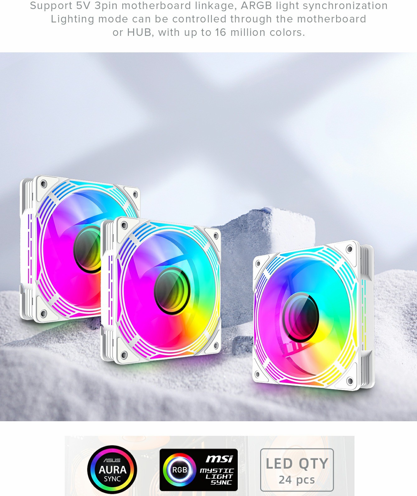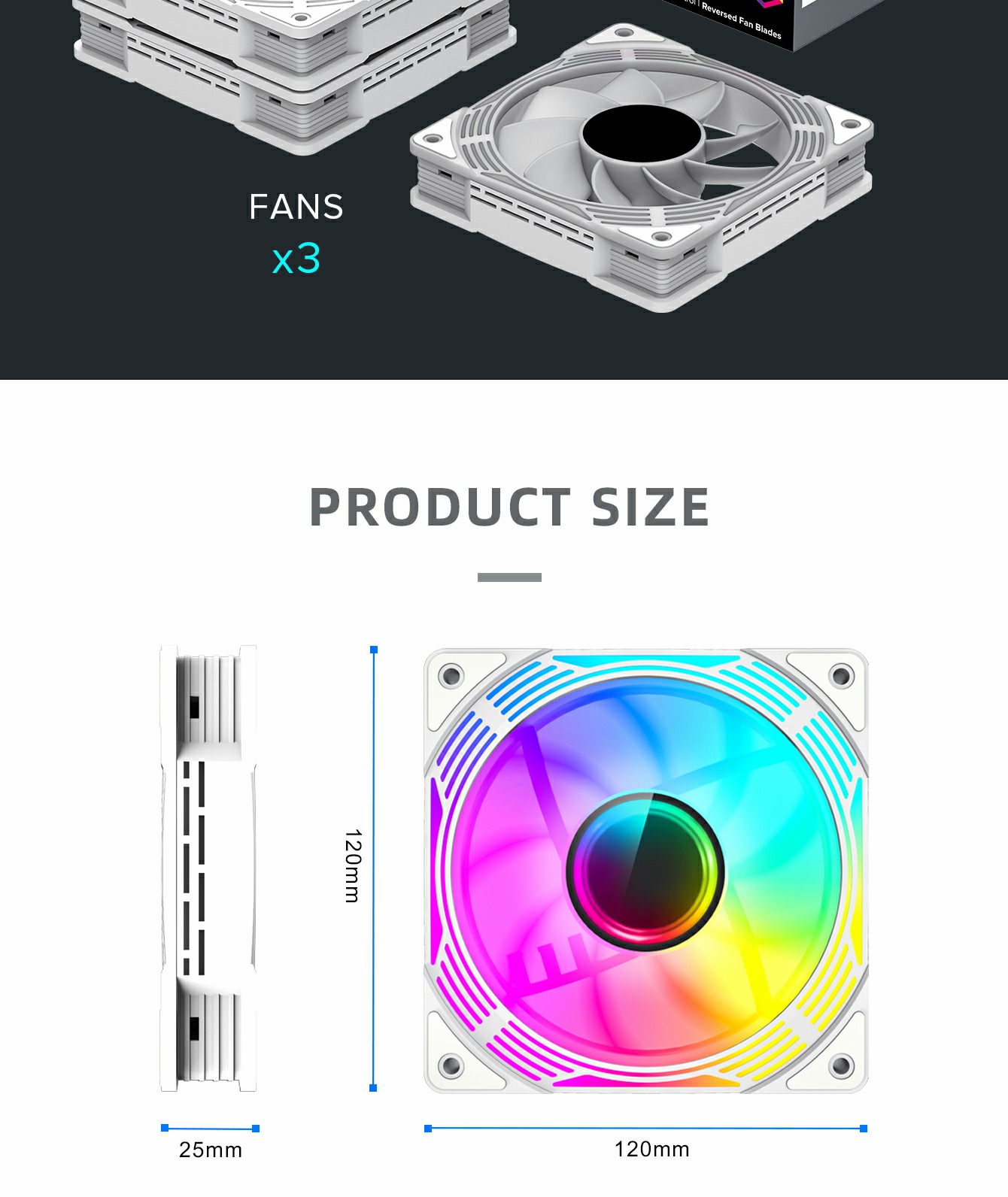 • 【Intelligent Speed Control】3 pcs 120mm full function ARGB PWM fans