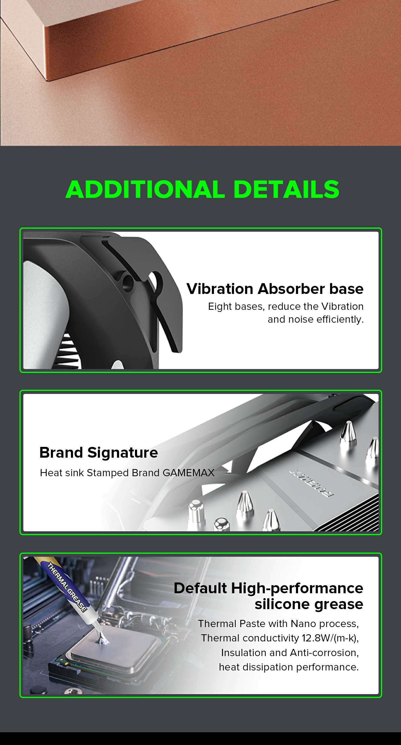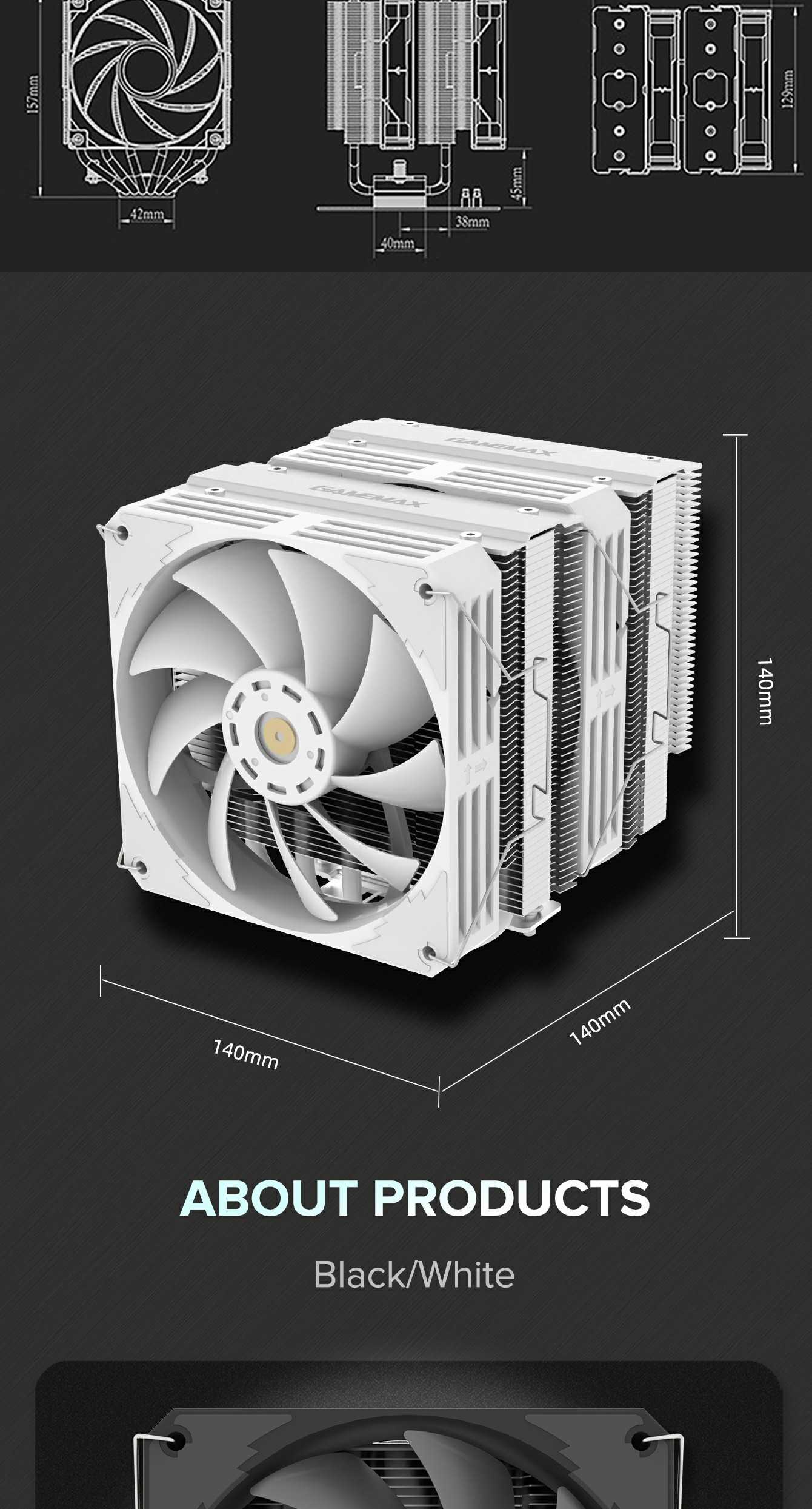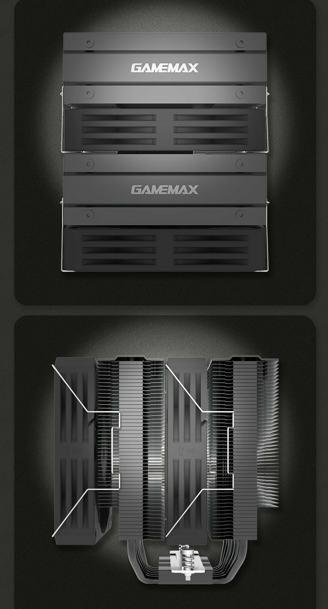 • Achieve dominant cooling and silent efficiency with award GameMax Twin600 CPU air cooler, the zero-light classical edition Twin600 offers ideal choice for PC building with the minimalistic design language of GameMax aesthetics