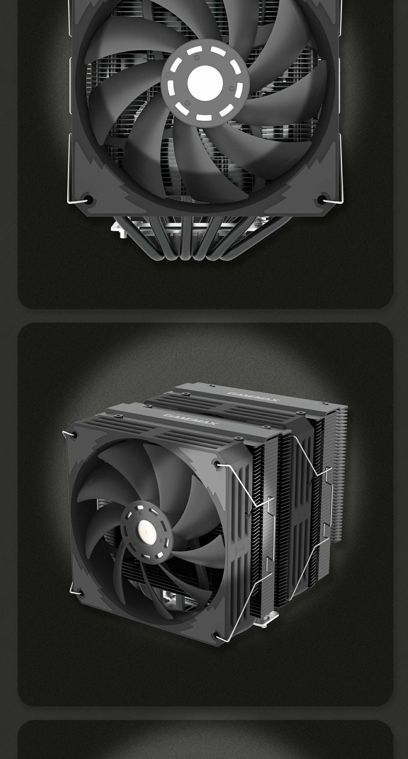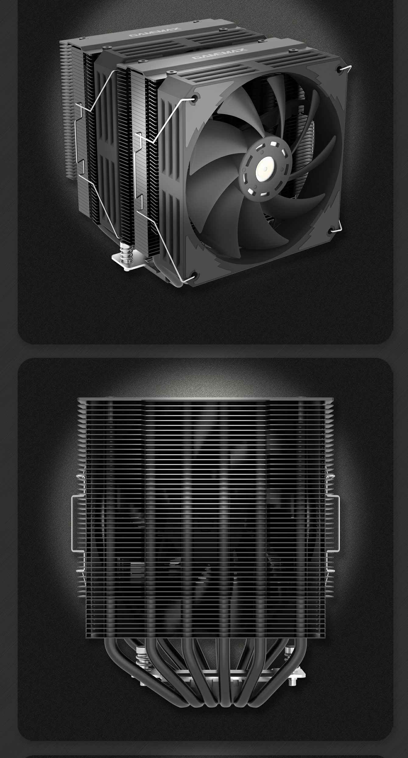 GameMax Rampage series Twin600 CPU Dual-Tower performance with high compatibility, The Zero-Light classical edition,6 Heat Pipes CPU Cooler, Dual 120mm PWM Fan, Aluminum Heatsink Cover, AGHP Technology, for AMD AM4/AM5 Intel 1851/1700/1150/1200