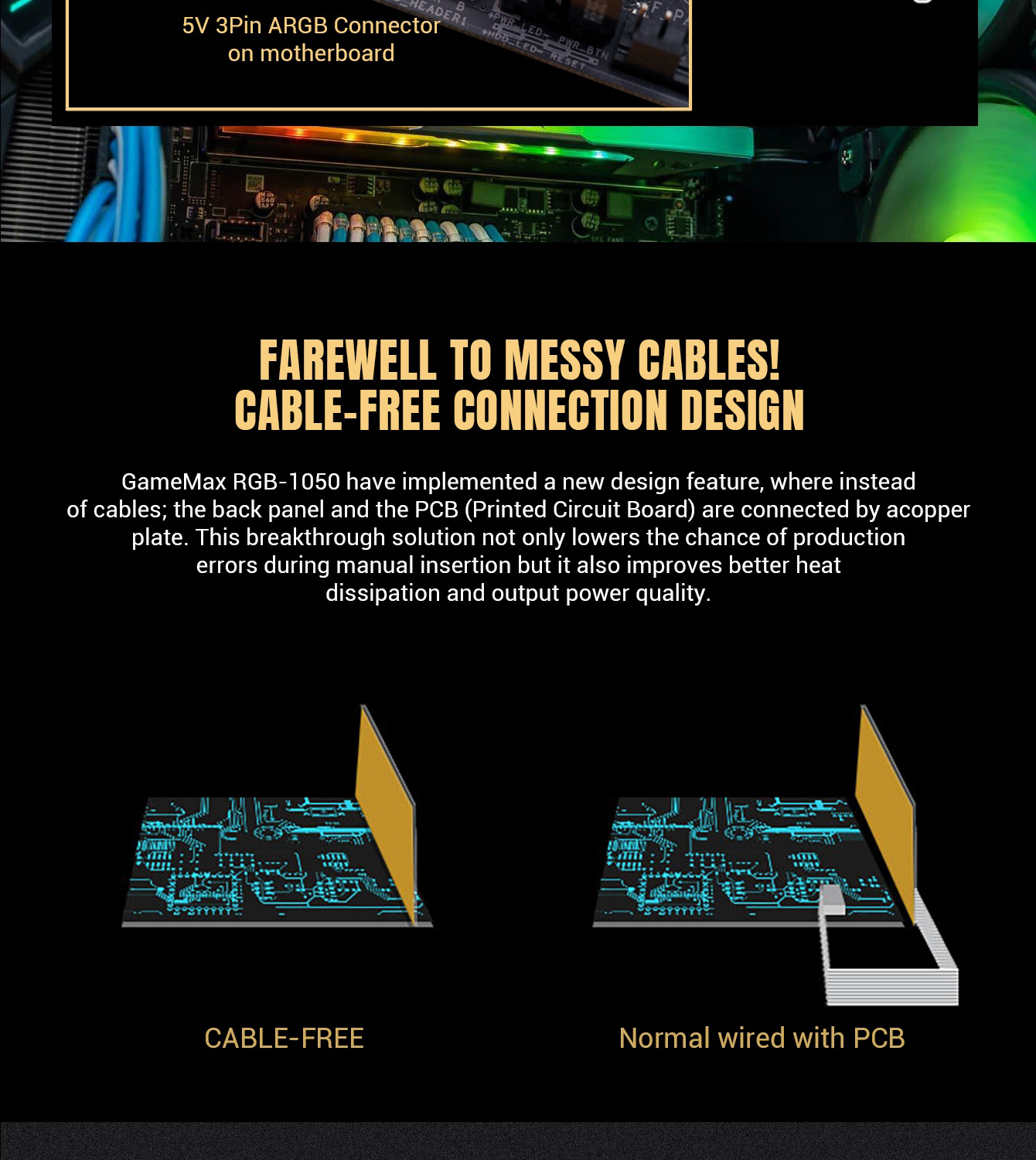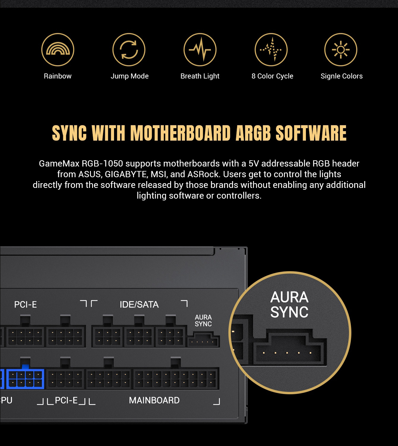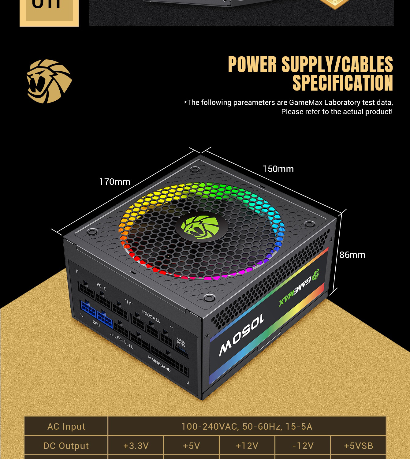 Gamemax RGB-1050 PRO Fully Modular 80+ Gold Certified, LLC+DC-DC design for Powerful single +12V rail helps ensure a stable and reliable supply to other PC components