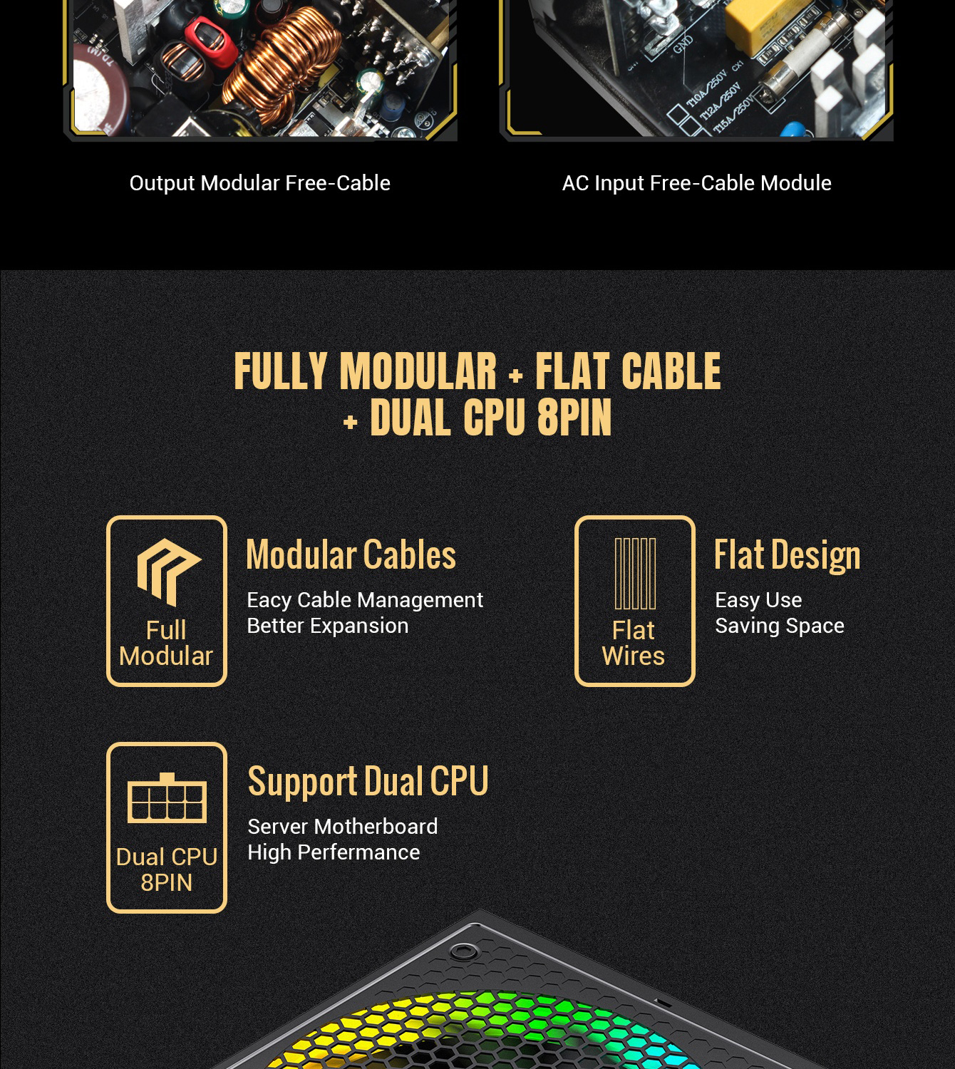 • Full Modular: 100% Free-Cable Internal PCB Design, Farewell to messy cables!