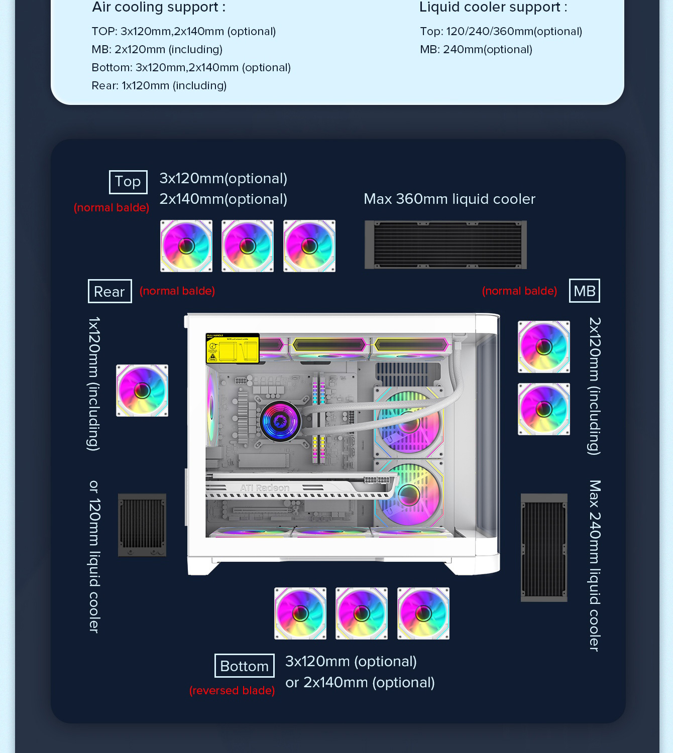 | bottom | 120mm*3 or 140mm*2(FAN Optional) | |