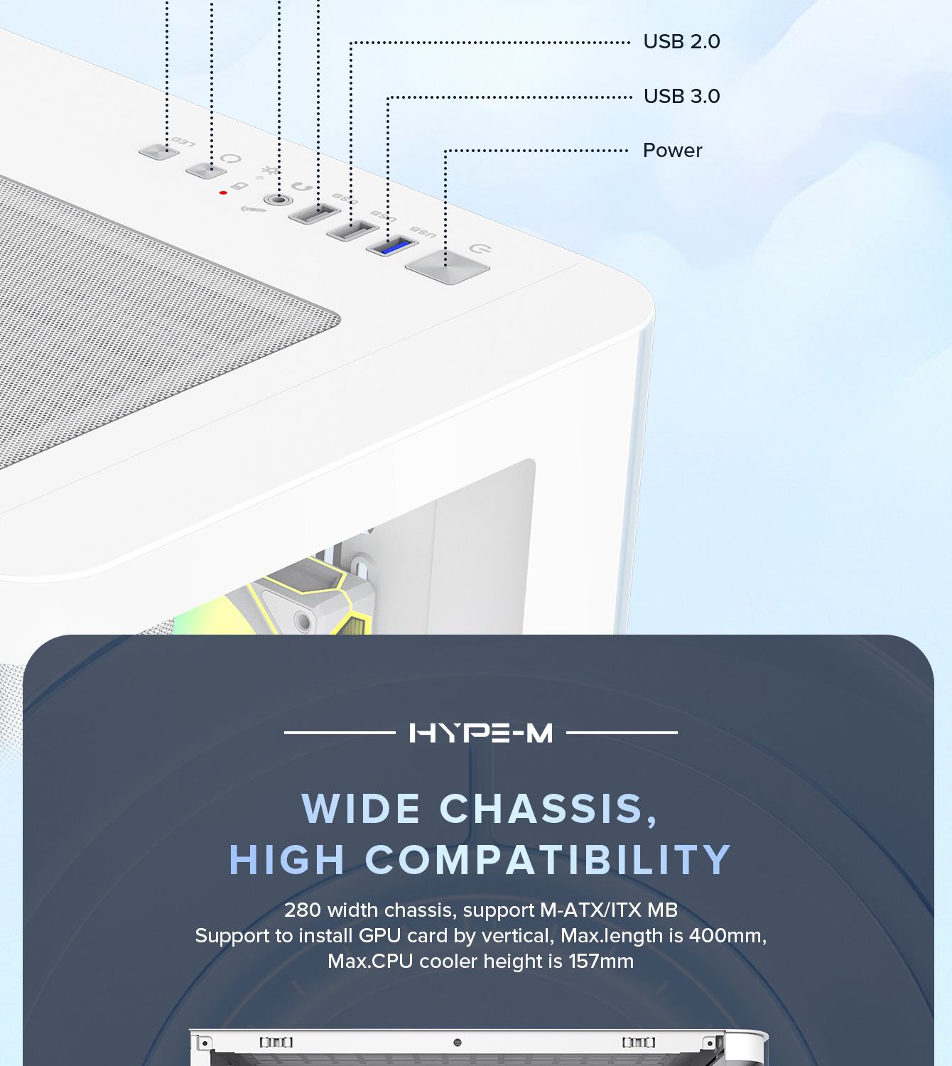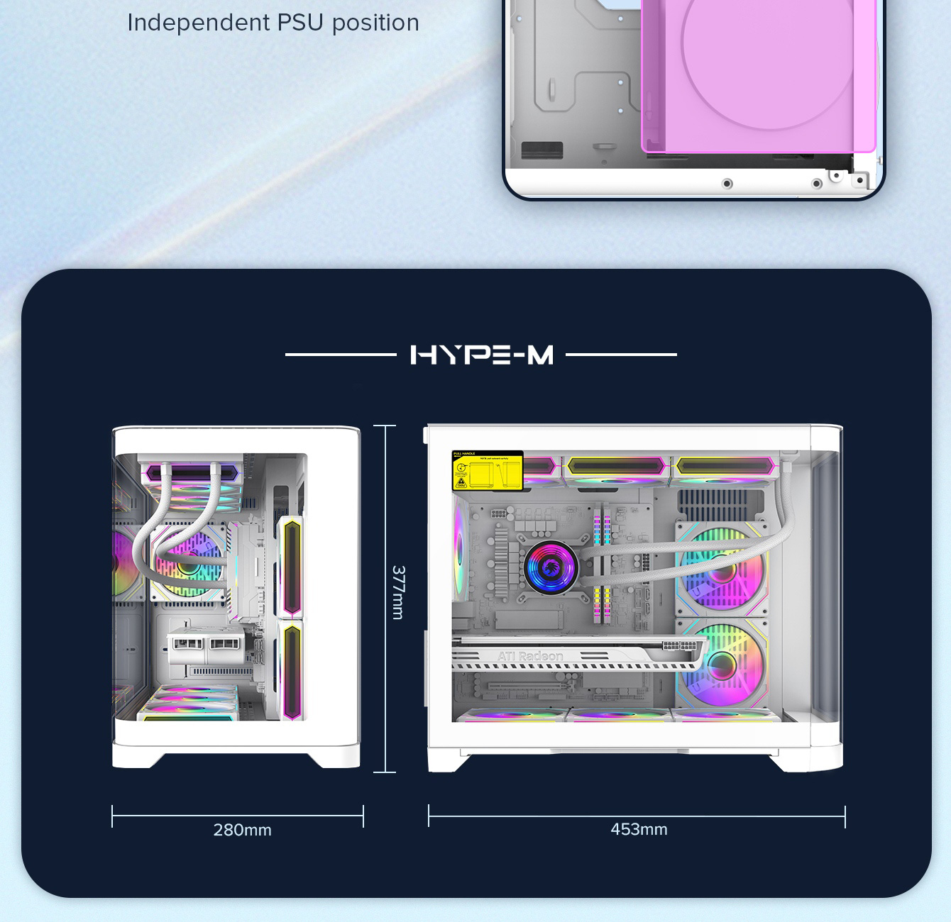 HYPE-M Premium Micro ATX PC case by GameMax- has a unique airflow path allowing for a wide range of compatibility and plenty of cooling options