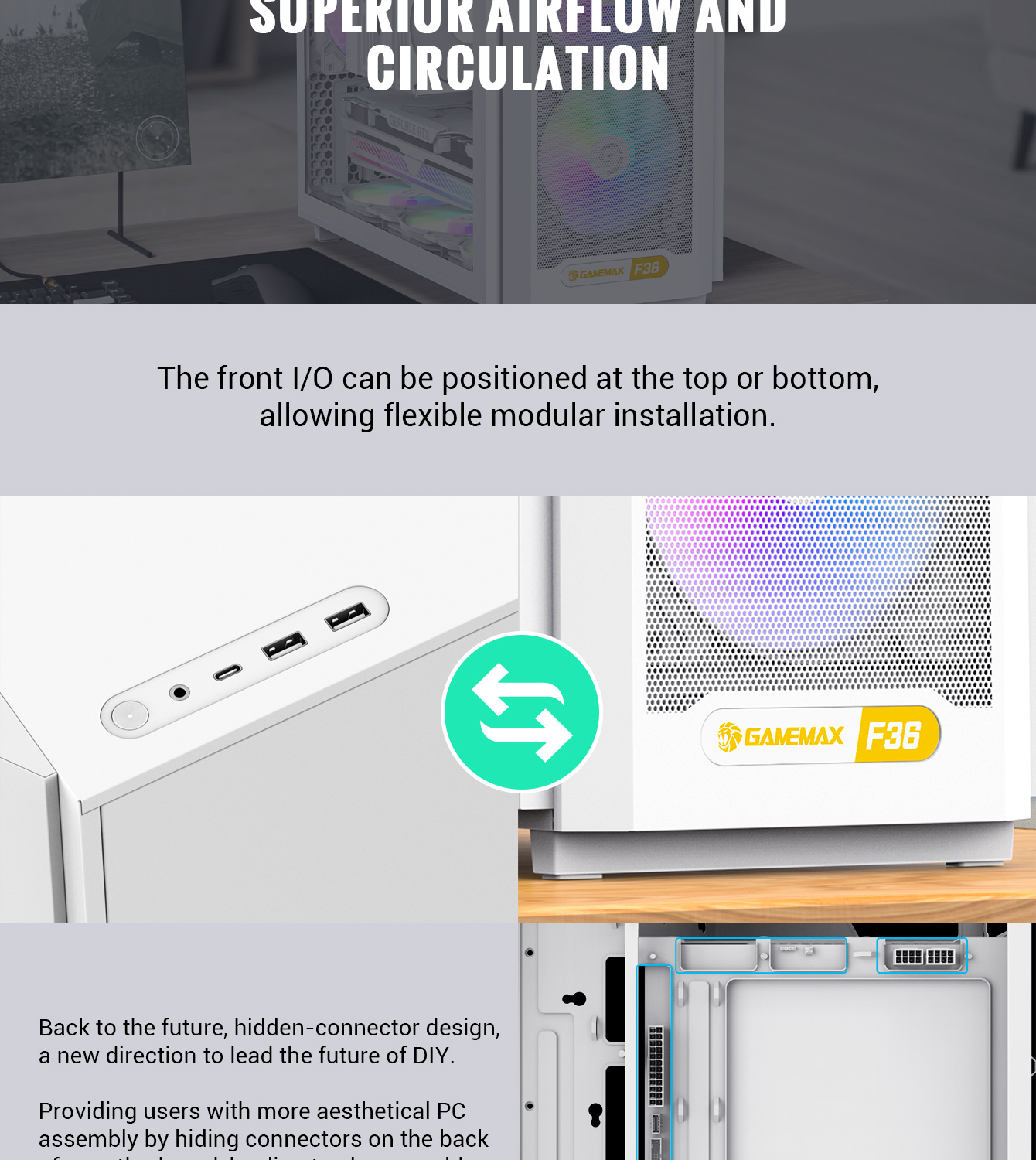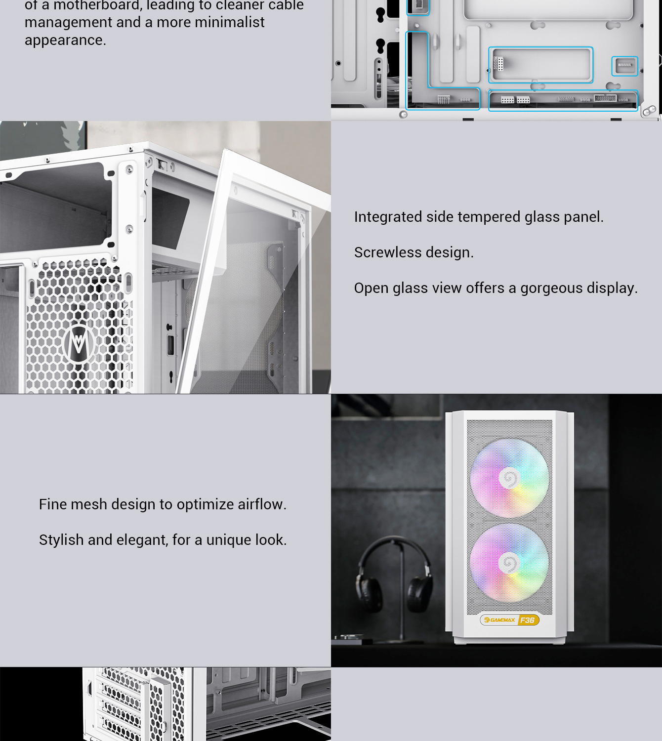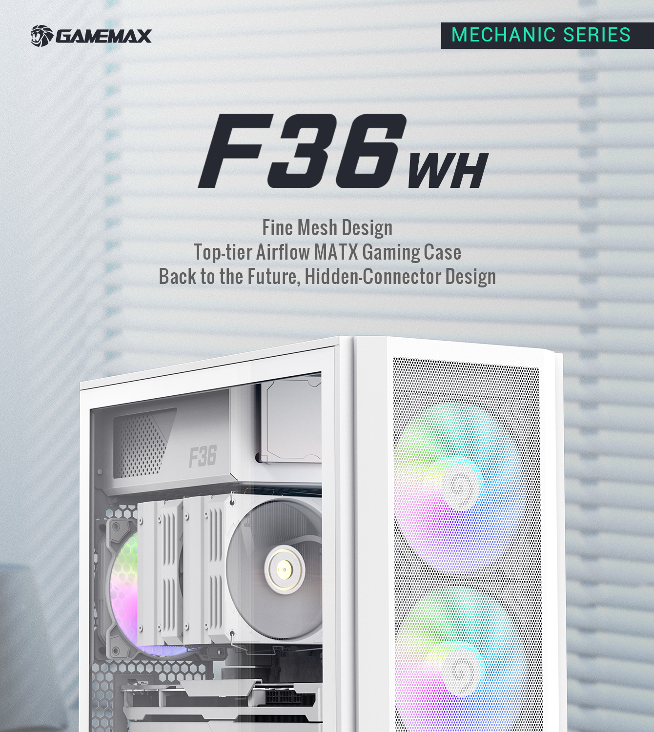 GameMax F36 WH Micro-ATX Gaming Case: a sleek, airflow-optimized, and easy-to-install premium case featuring a durable steel frame and 4.0mm tempered glass.
