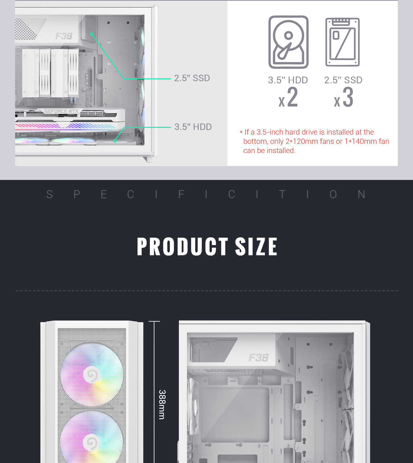 • Includes 3 ARGB/PWM fans for enhanced cooling performance.