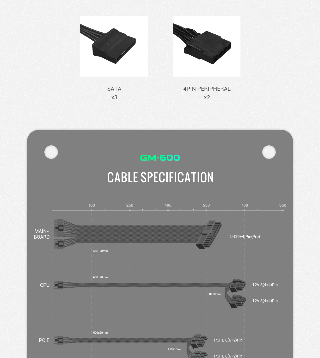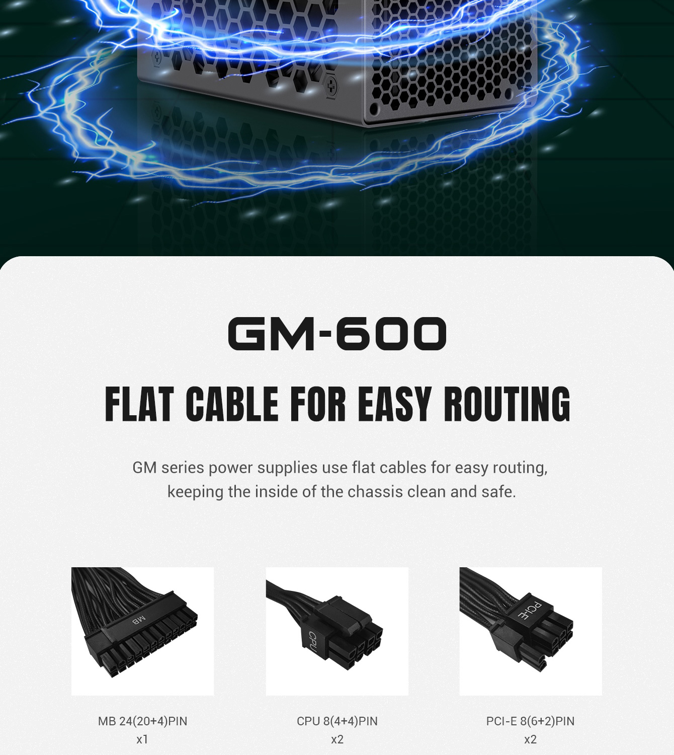 GM-Series power supply, Fully-modular cables allowing you to only connect cables that your system needs.