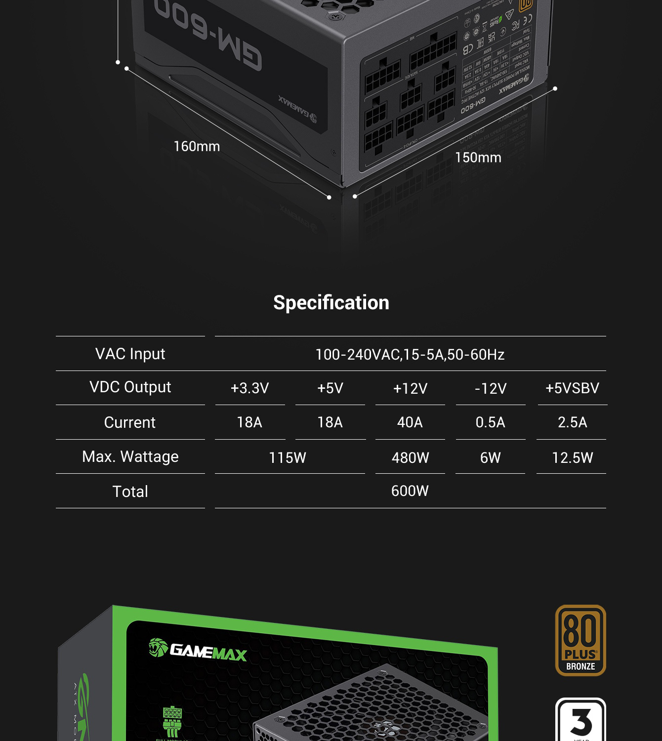 | 80 Plus Certified: | Yes - 80 Plus Bronze |