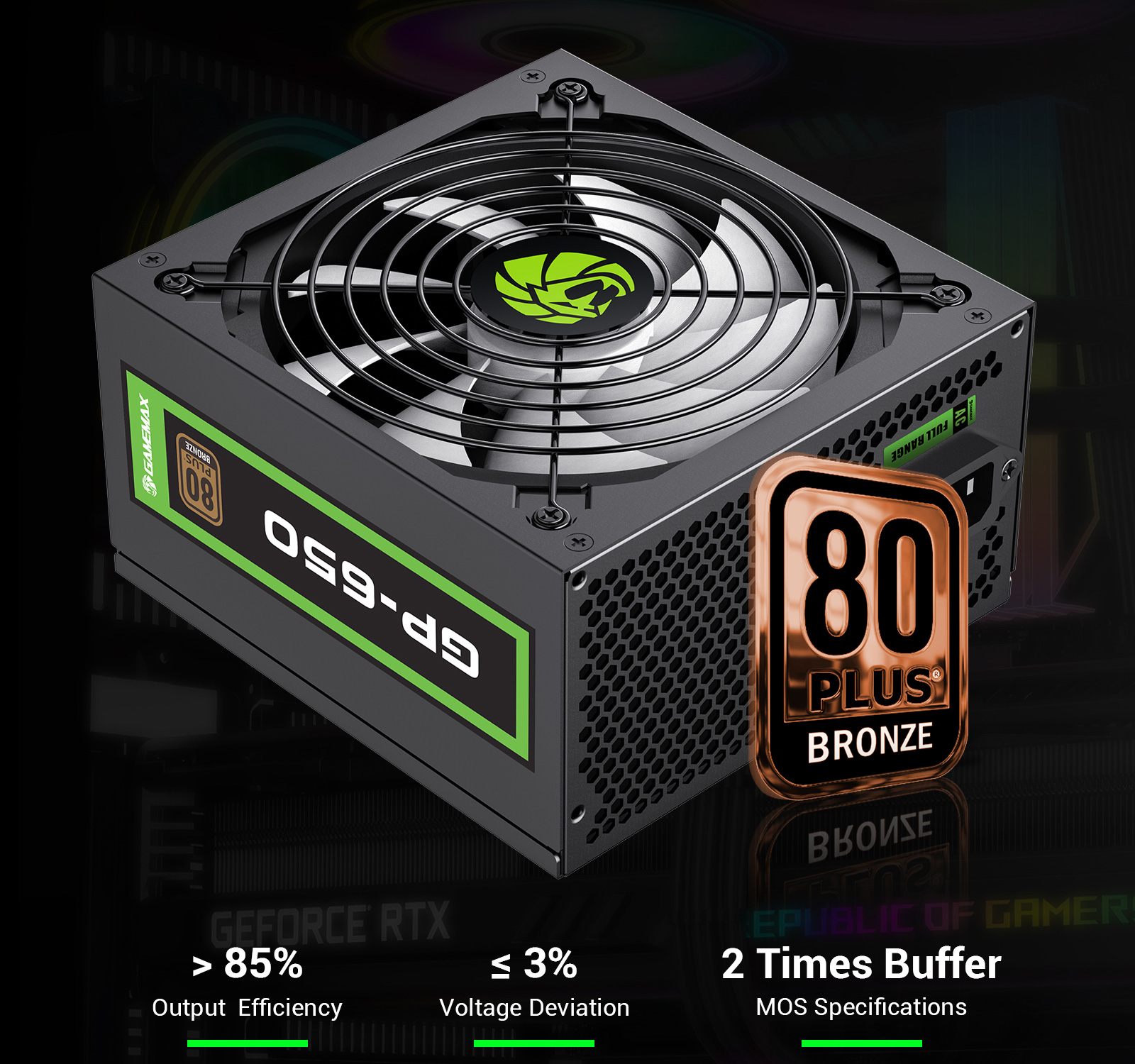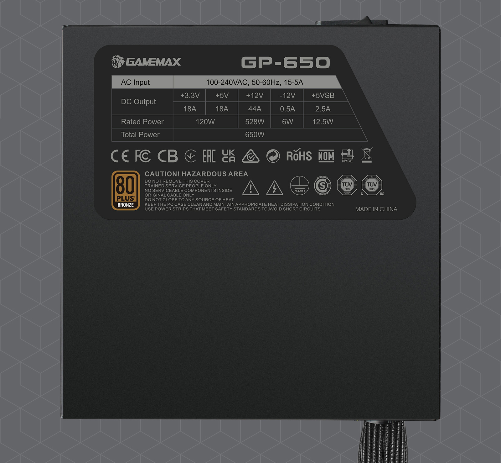 GameMax GP-650 Elegant PSU casing with white flat cables, Designed for high performance business and gaming build and various compatibility