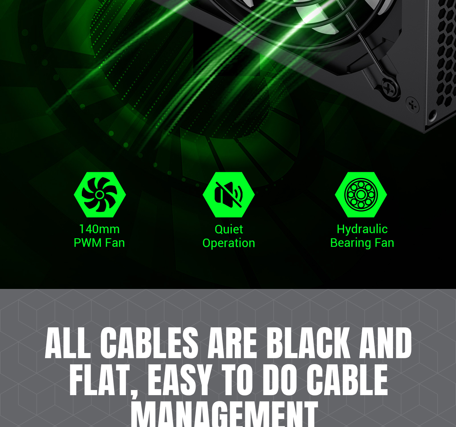 • 14cm silent black fan with smart thermal fan speed control circuit