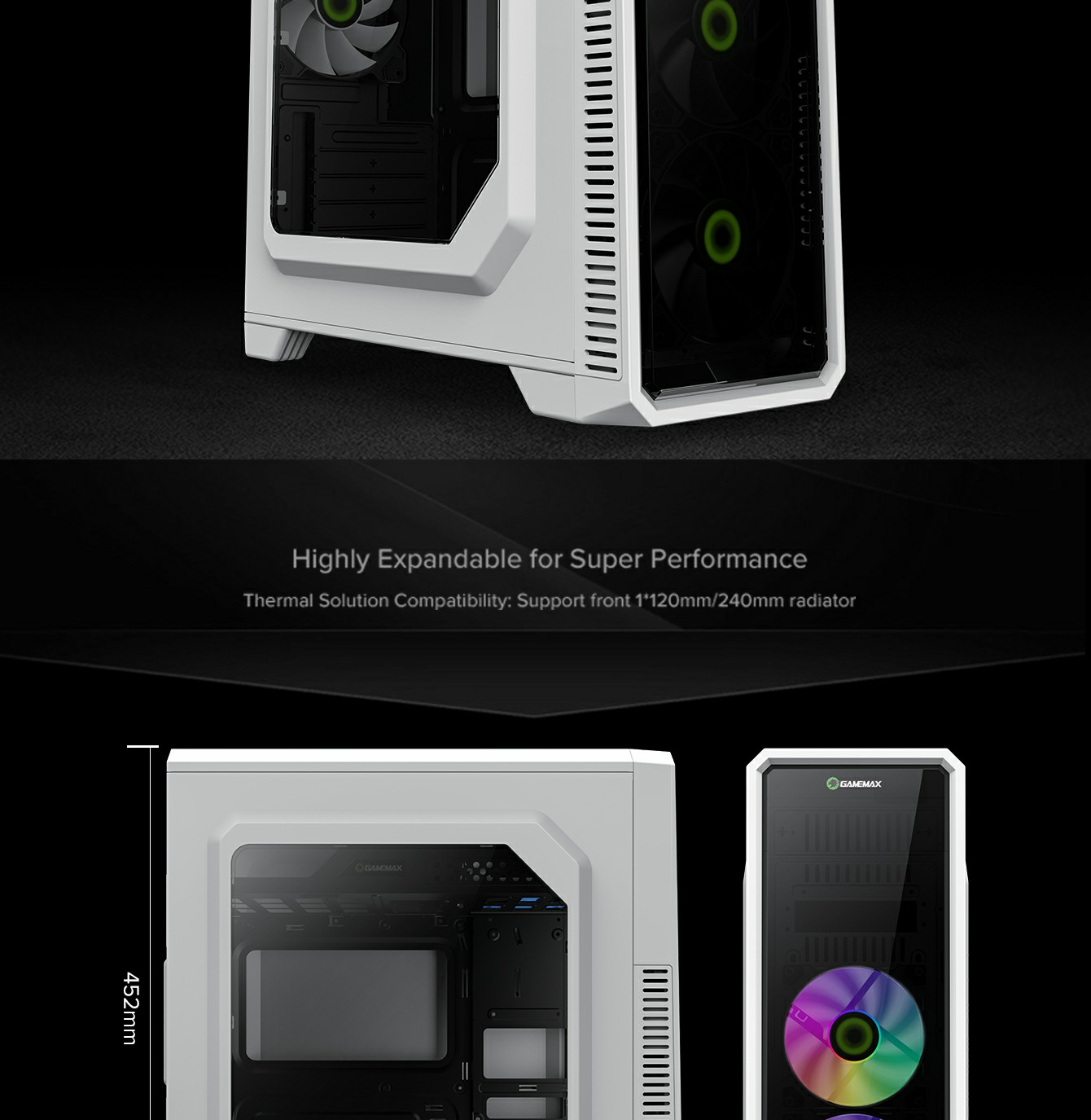 Gamemax G561 WH white ATX Mid-Tower Gaming chassis, 0.5mm Case in White, Black Chassis inside