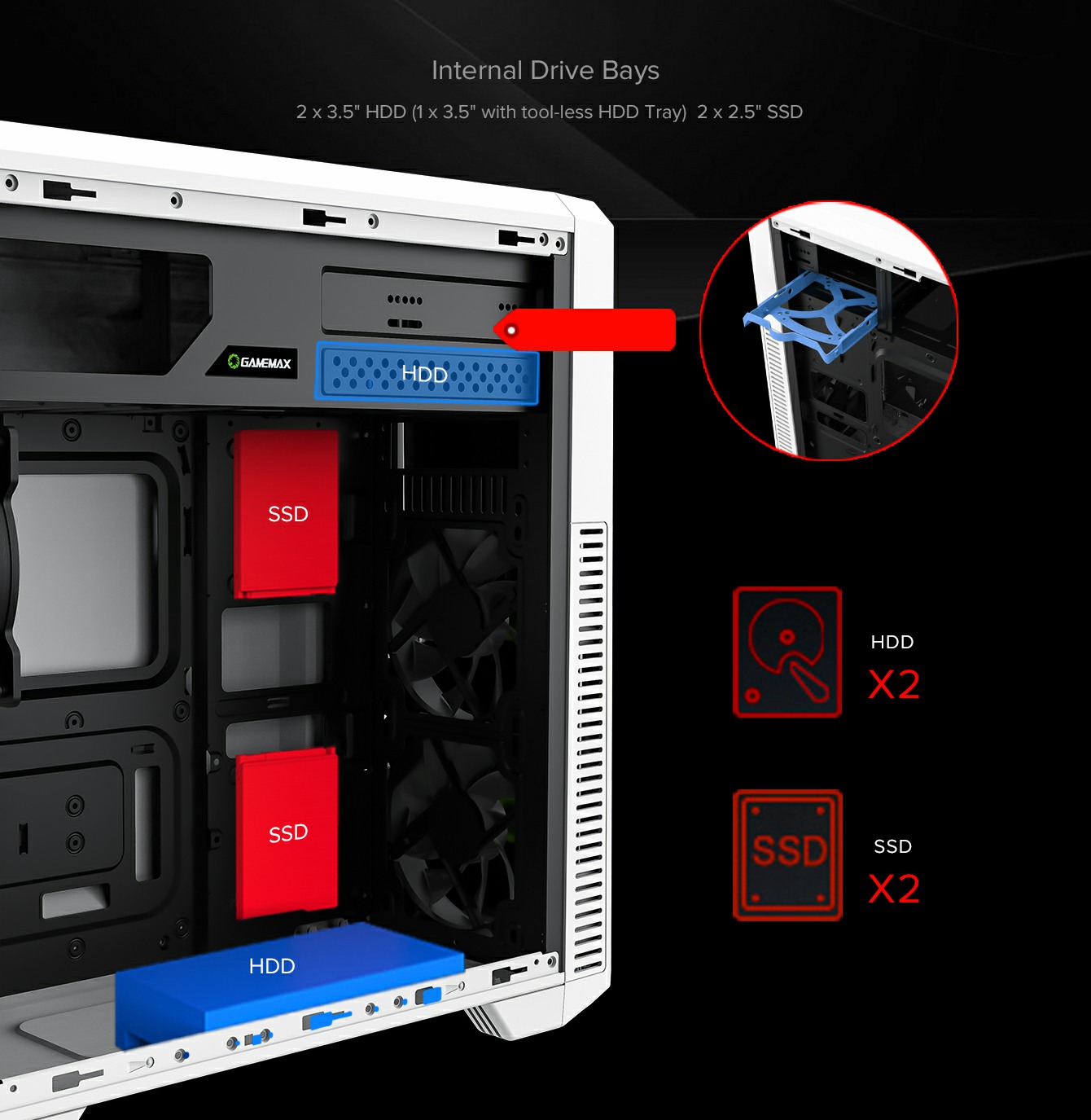 • Handy Screw, HDD cage with Tool-less Kit