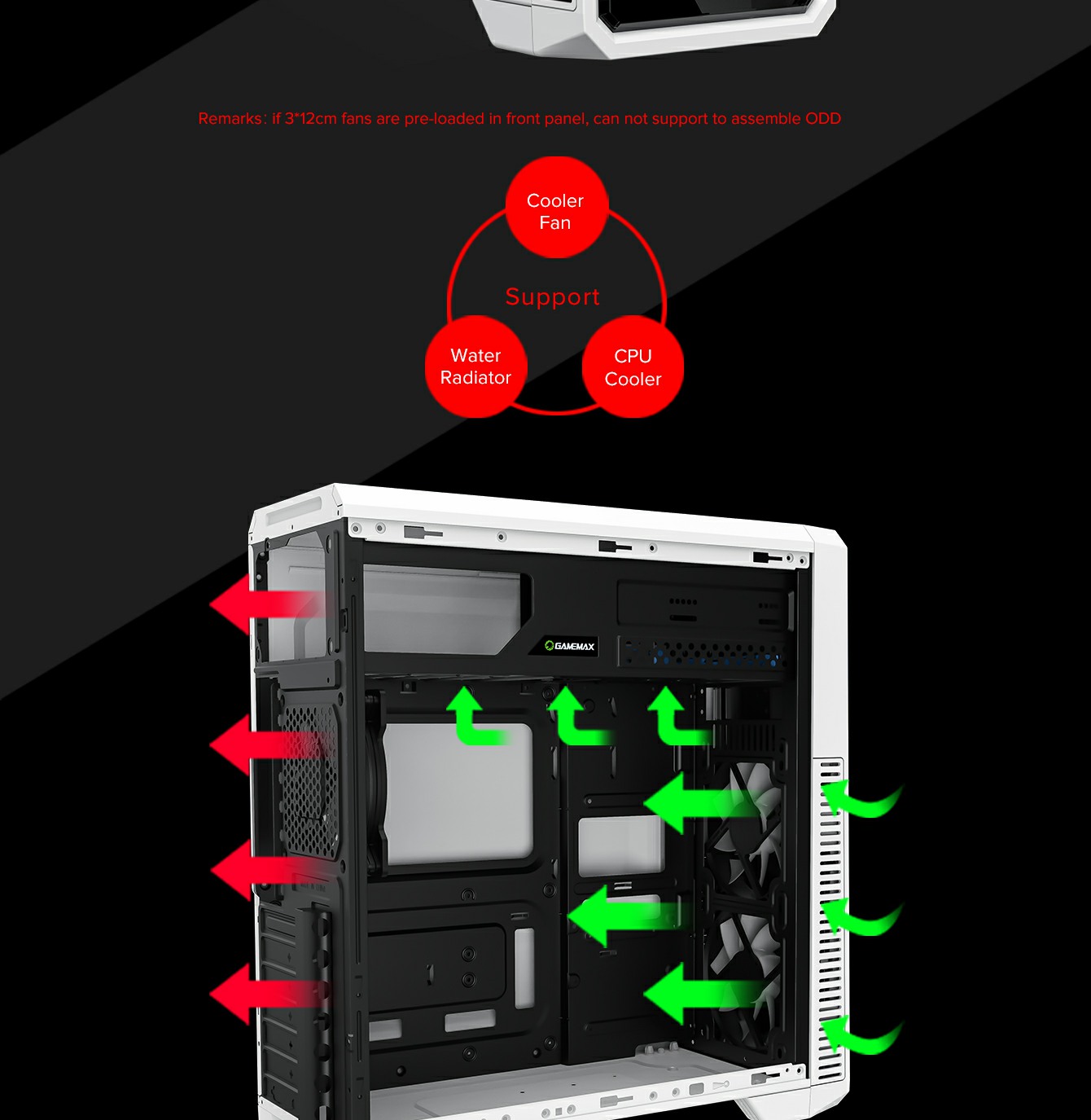 | Rear: 1 x 12cm Fixed RGB Fans | |