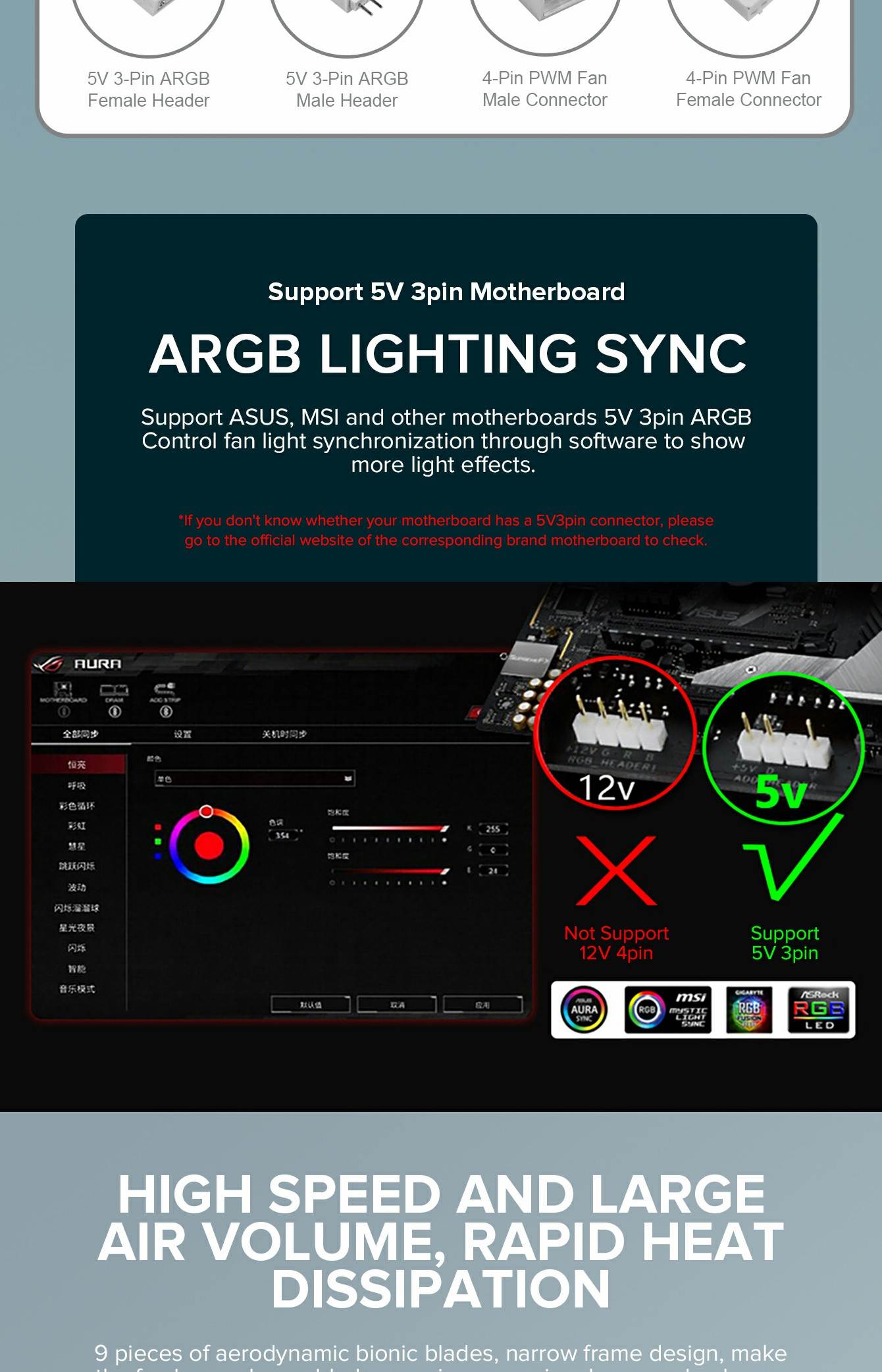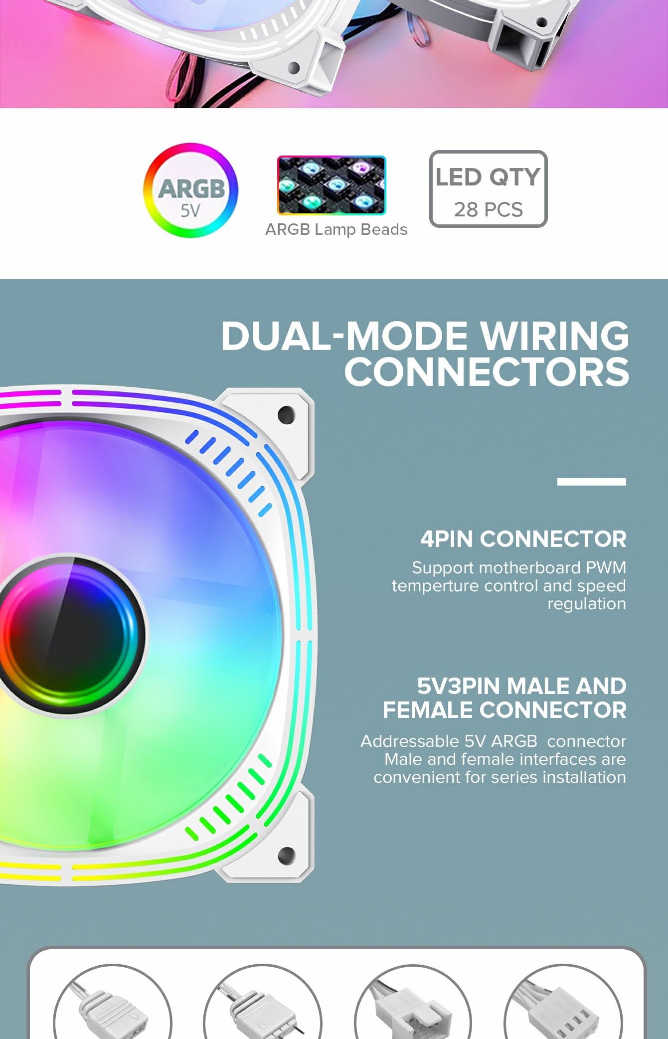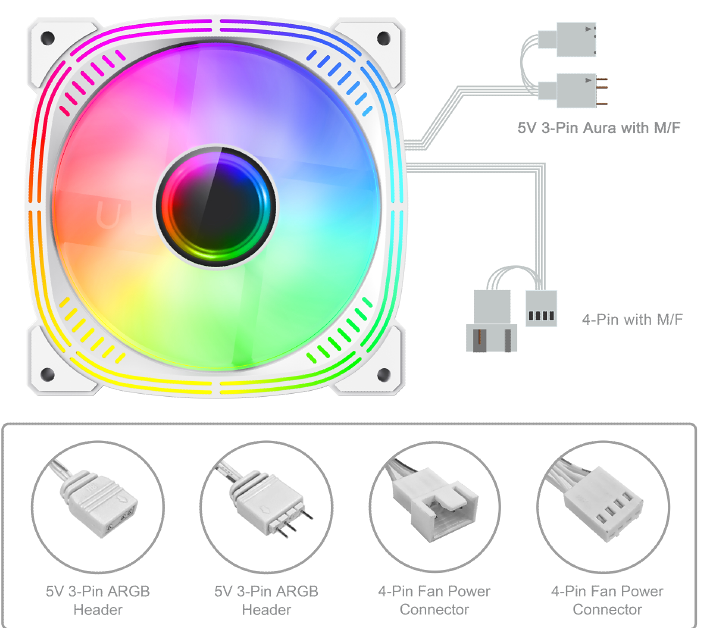 ARGB 3pin Male and Female connector, supports standard addressable RGB leds , Asus Aura and it can extend to link more fans via the series connection