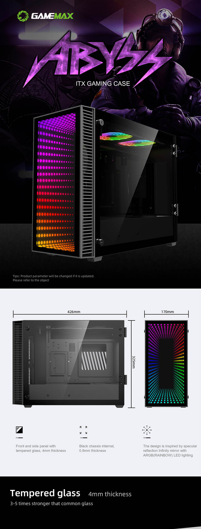 Ultimate Mini ITX PC The Abyss ITX has it all in a 0.7 cubic foot size and a mesmerizing infinity front mirror front panel