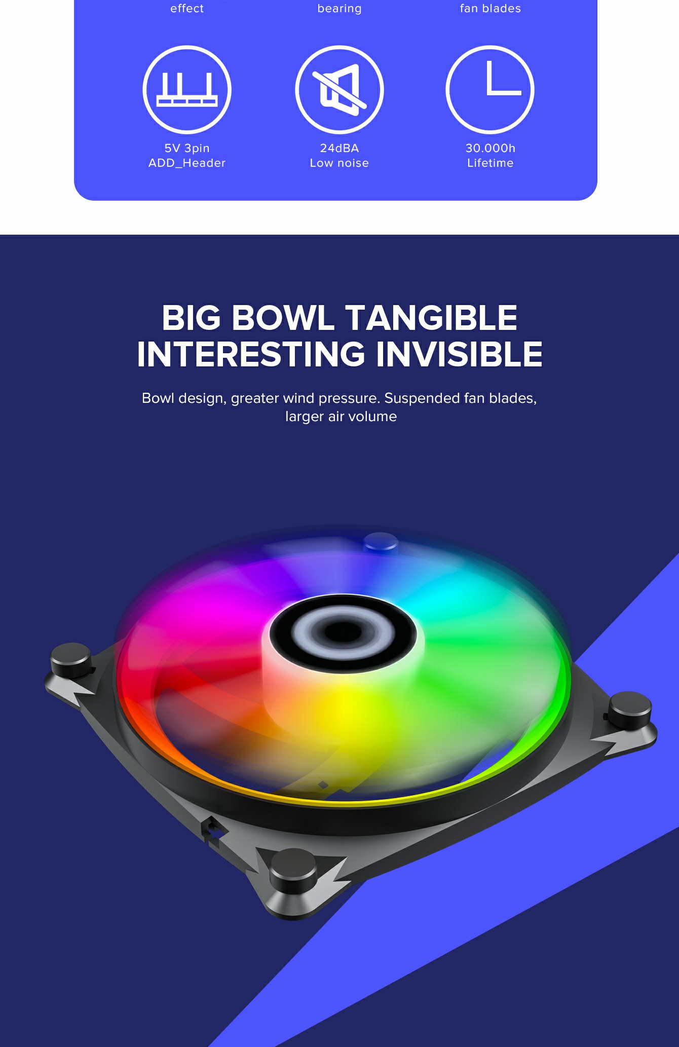 Centre inner ARGB light Big bowl ARGB fan. Silent and with unique design.