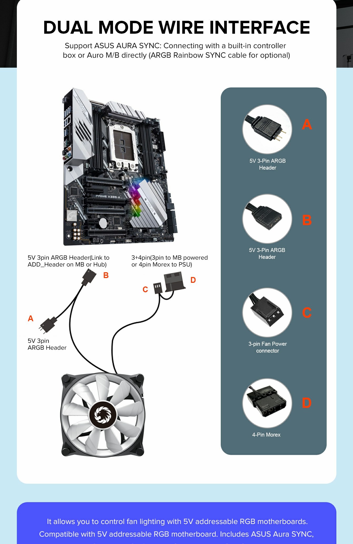• Support ASUS/MSI/Gigabyte RGB-SYNC mode (to be together with correct controller)