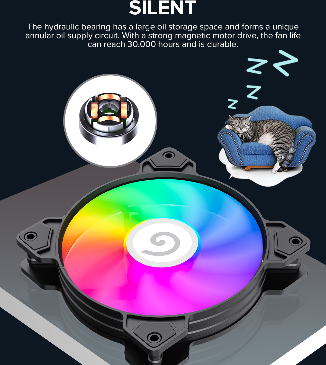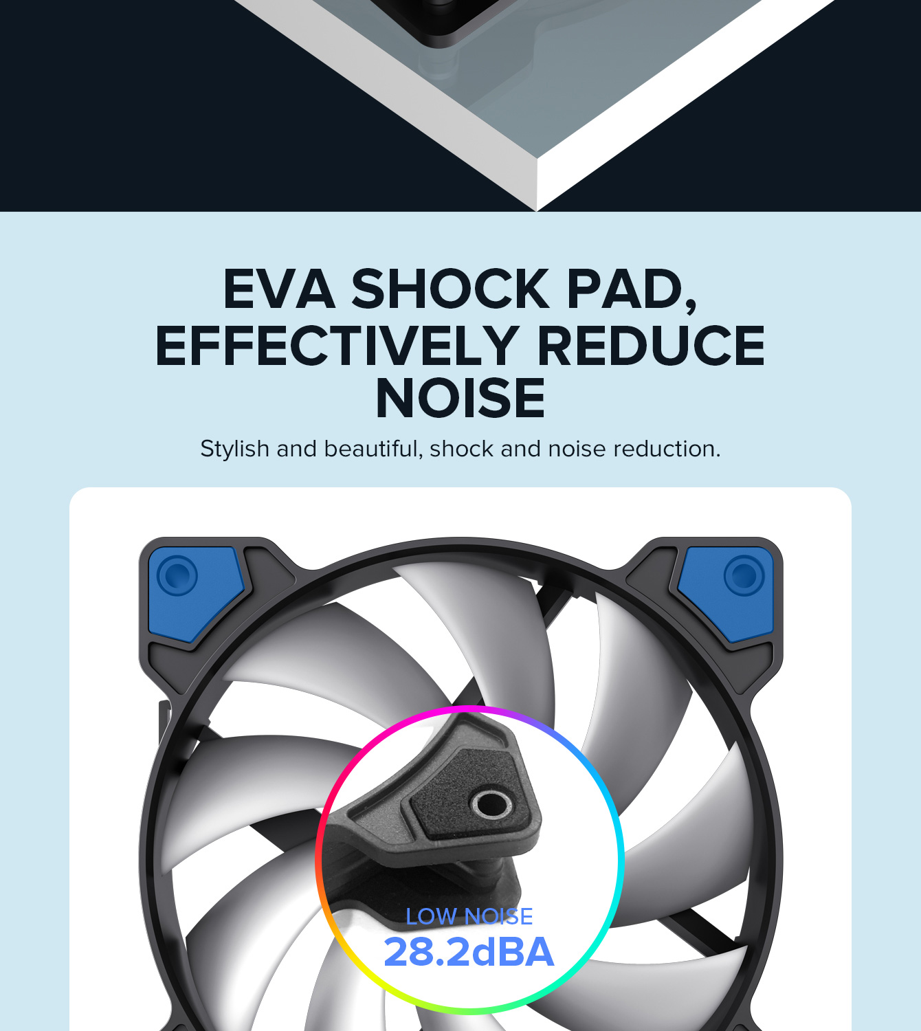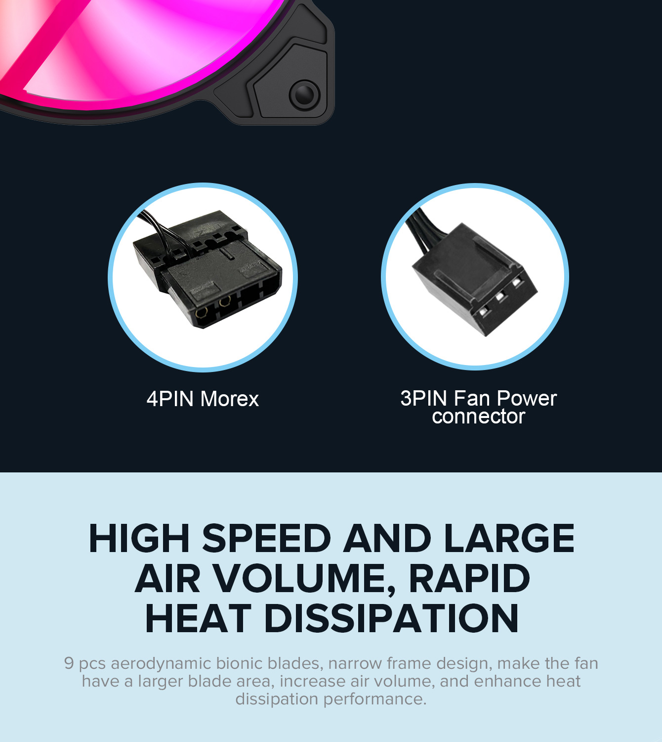Comes equipped with curved fan blades for increased air pressure, maximizing cooling performance and minimizing air resistance and noise.