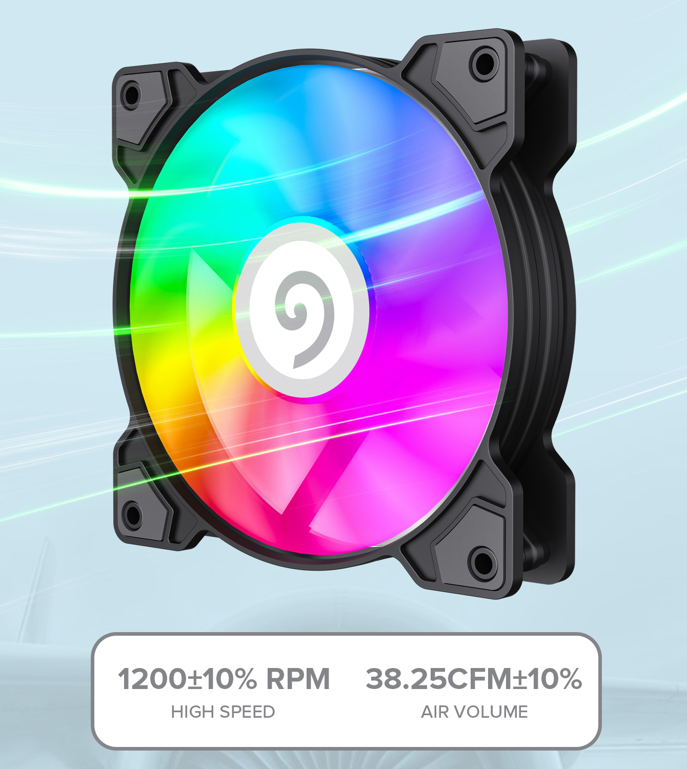 The fan speed of 1200 RPM with 38.25CFM, is for reducing noise and keeping your PC in silent as possible.