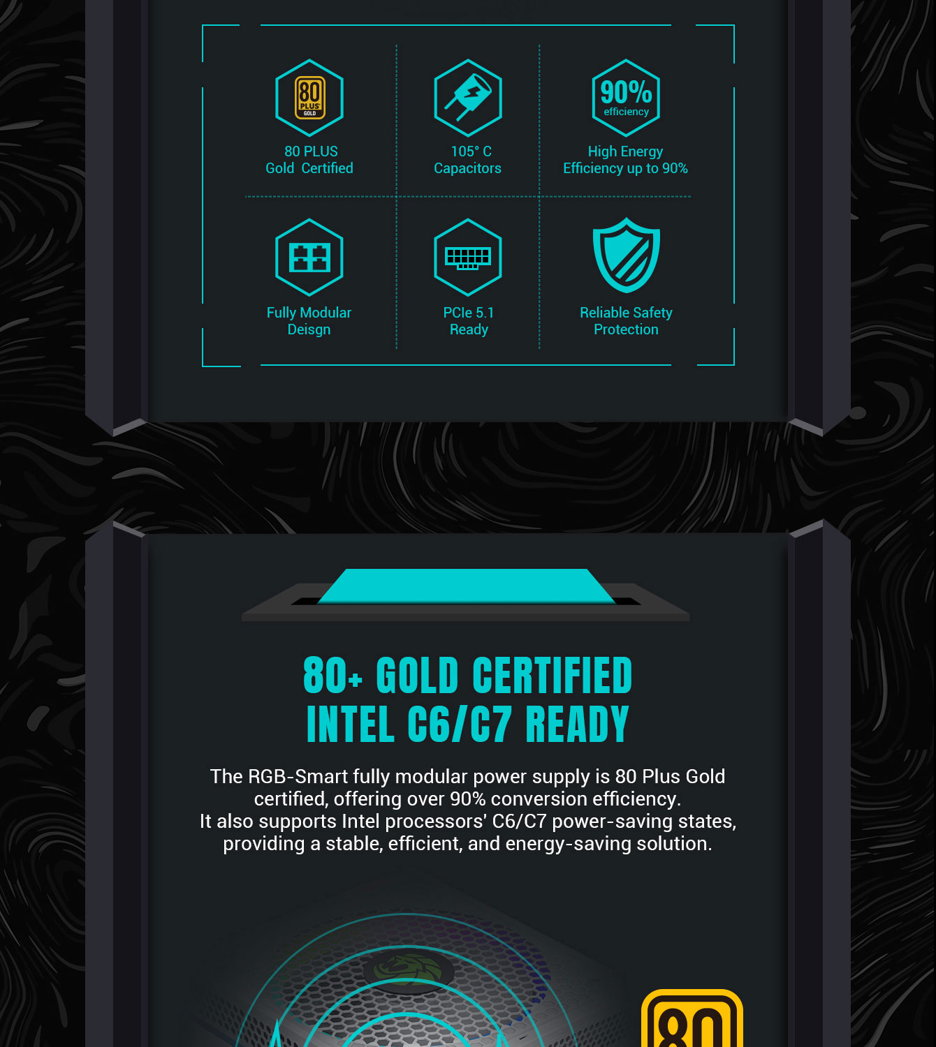 1050W Power: Fully modular, 80+ Gold Certified, 90% efficiency