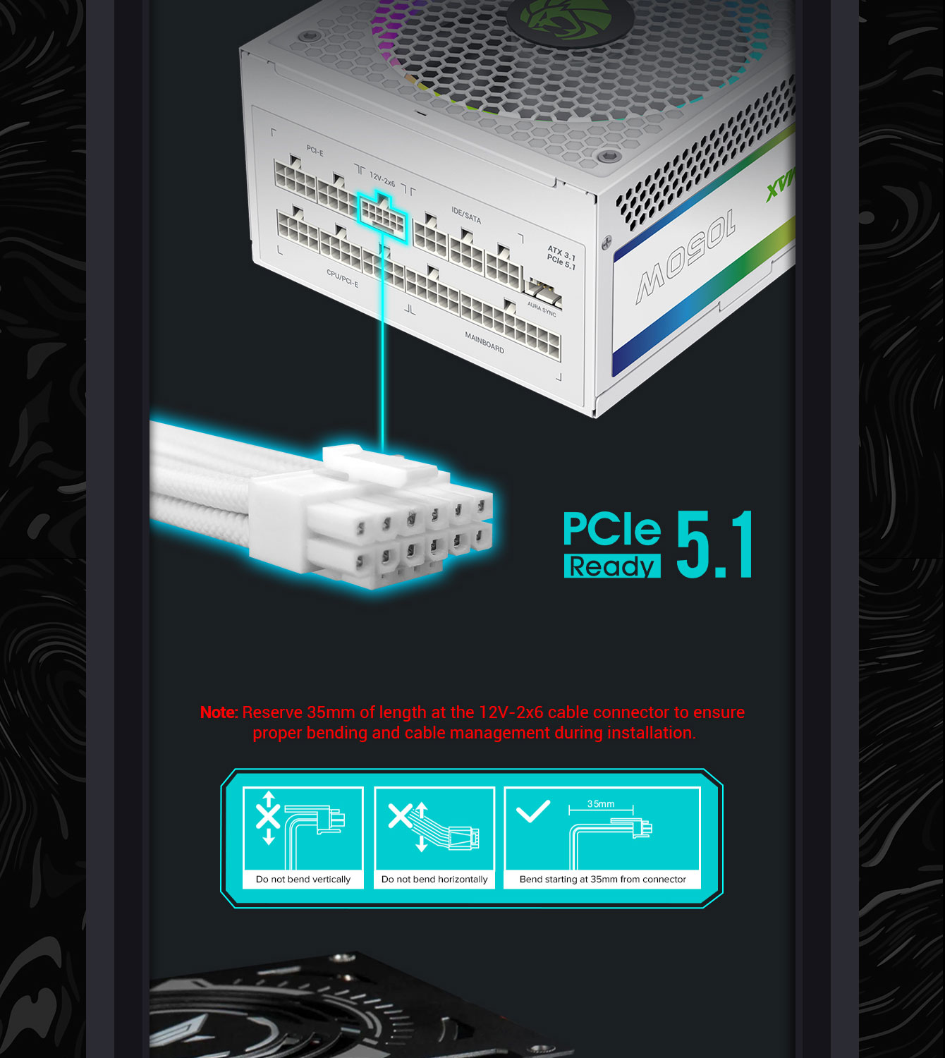 Compatibility: Supports ATX 3.0/3.1, PCIe 5.0/5.1, 16-pin 12V-2*6 for latest GPUs.