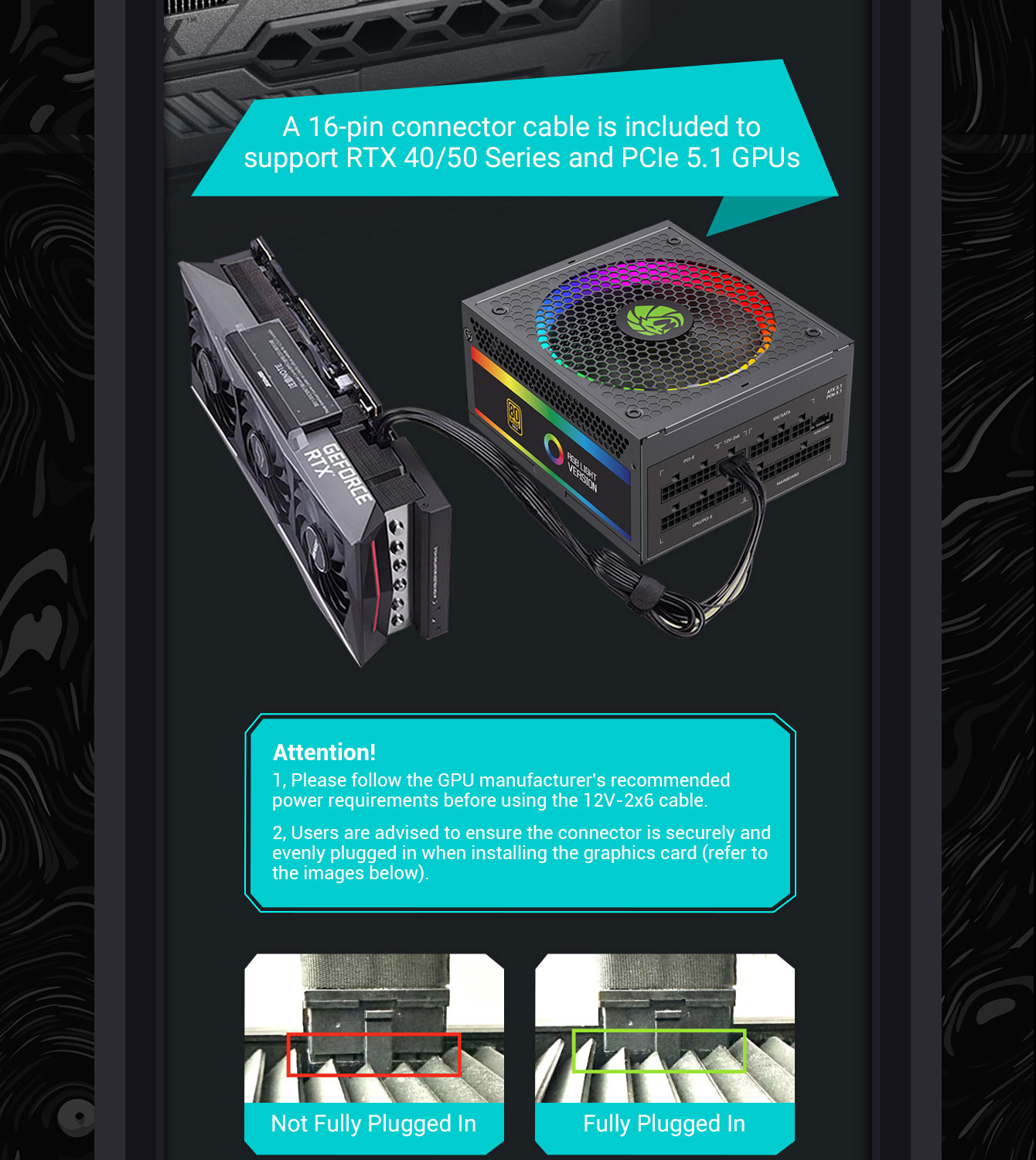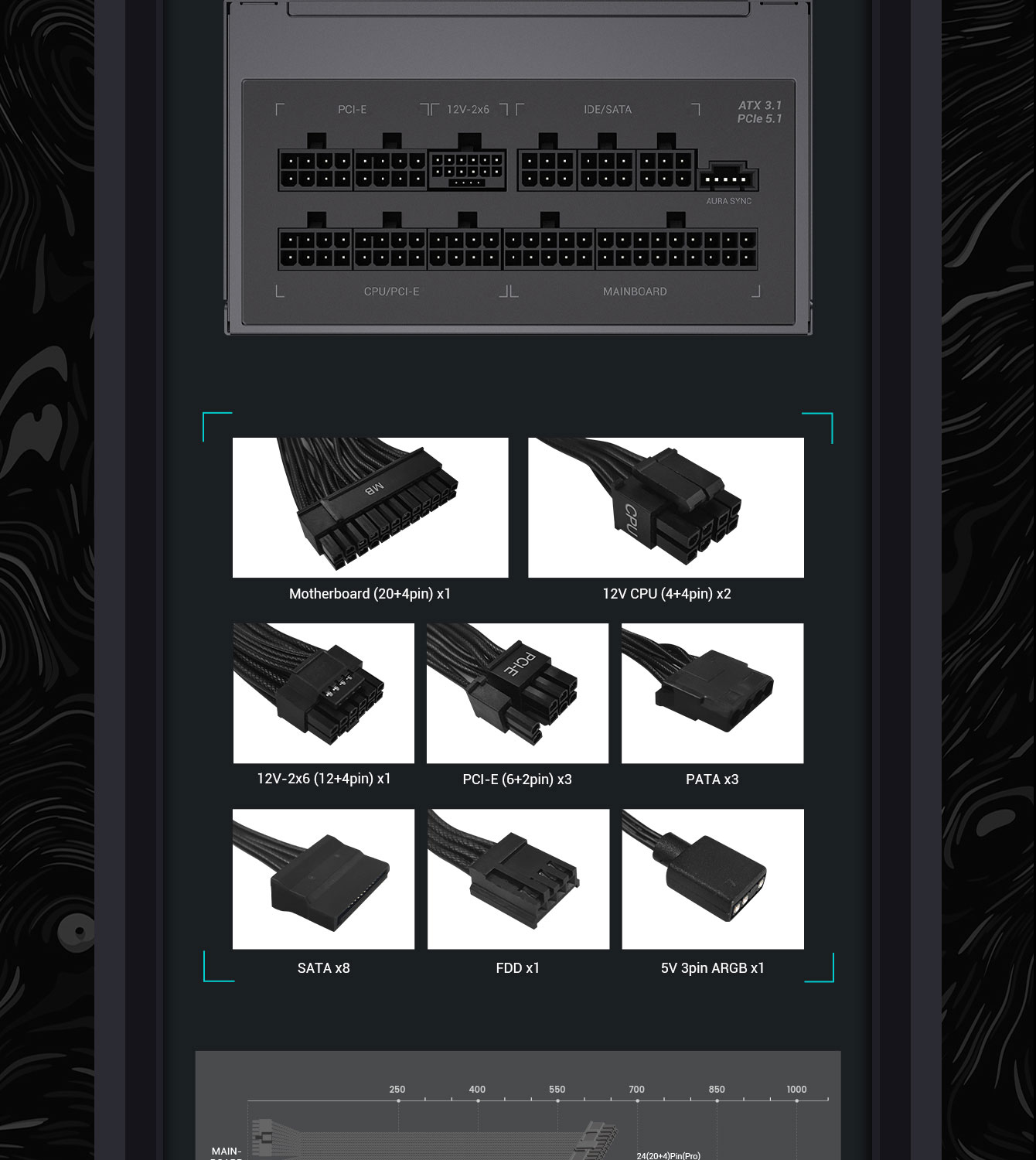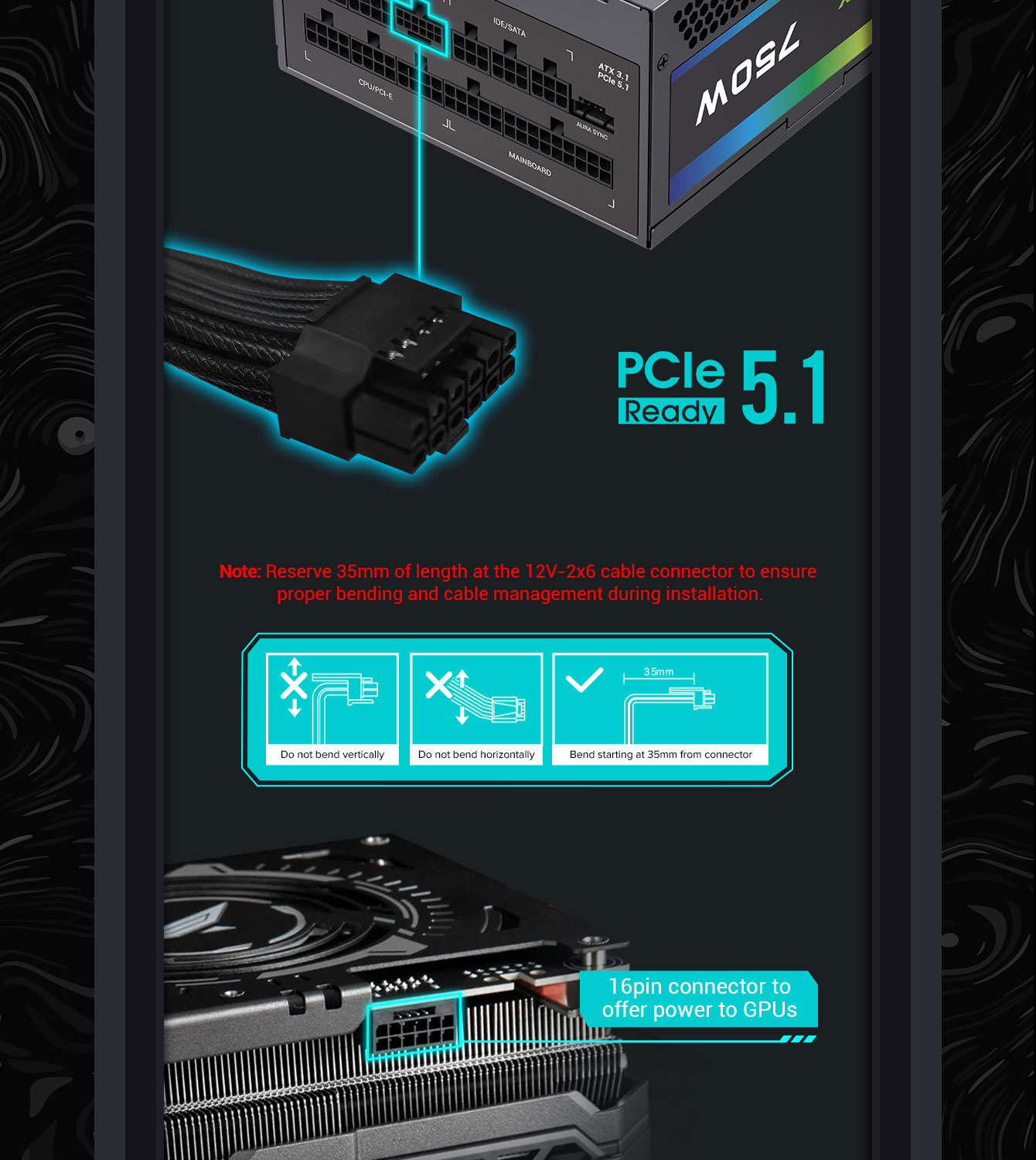• Compatibility: Supports ATX 3.1, PCIe 5.1, 16-pin 12V-2*6 for latest GPUs.