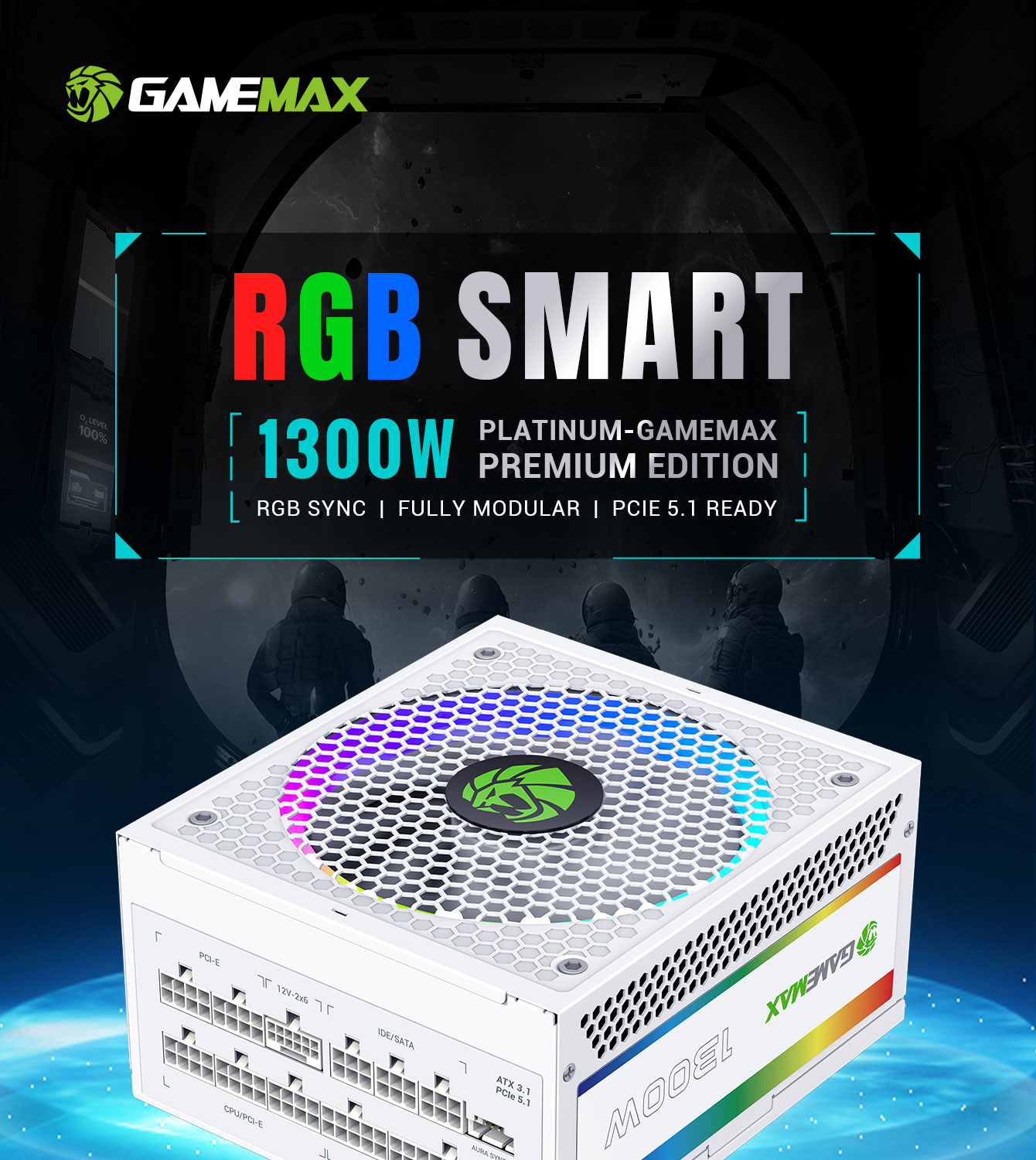 GameMax RGB 1300w white pc power supply,80 Plus Platinum,modular power supply