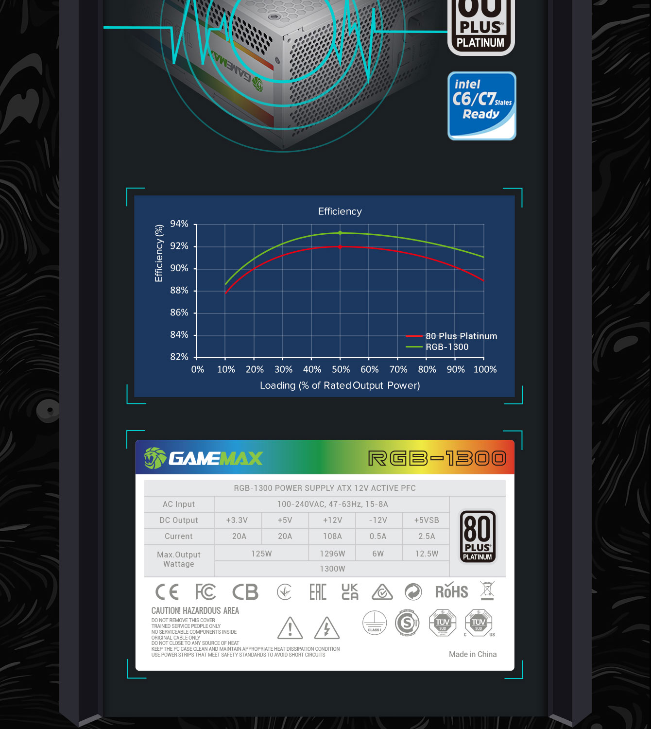• 1300W Power: Fully modular, 80+ Platinum Certified, 92% efficiency