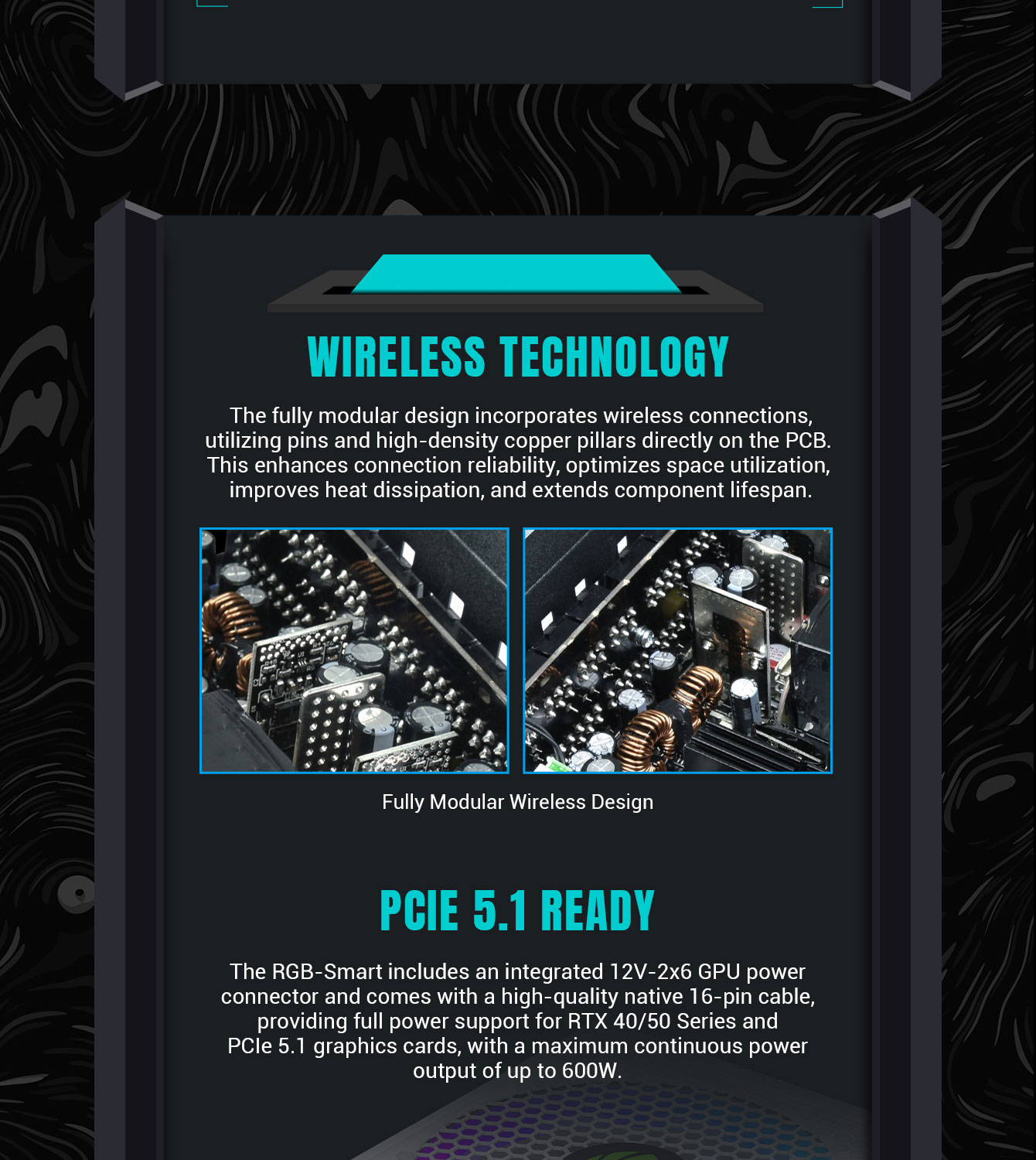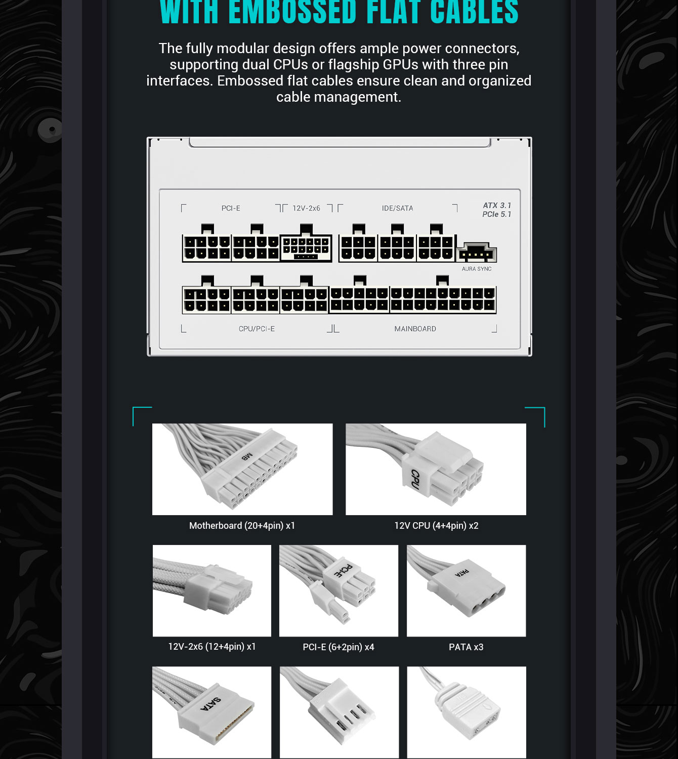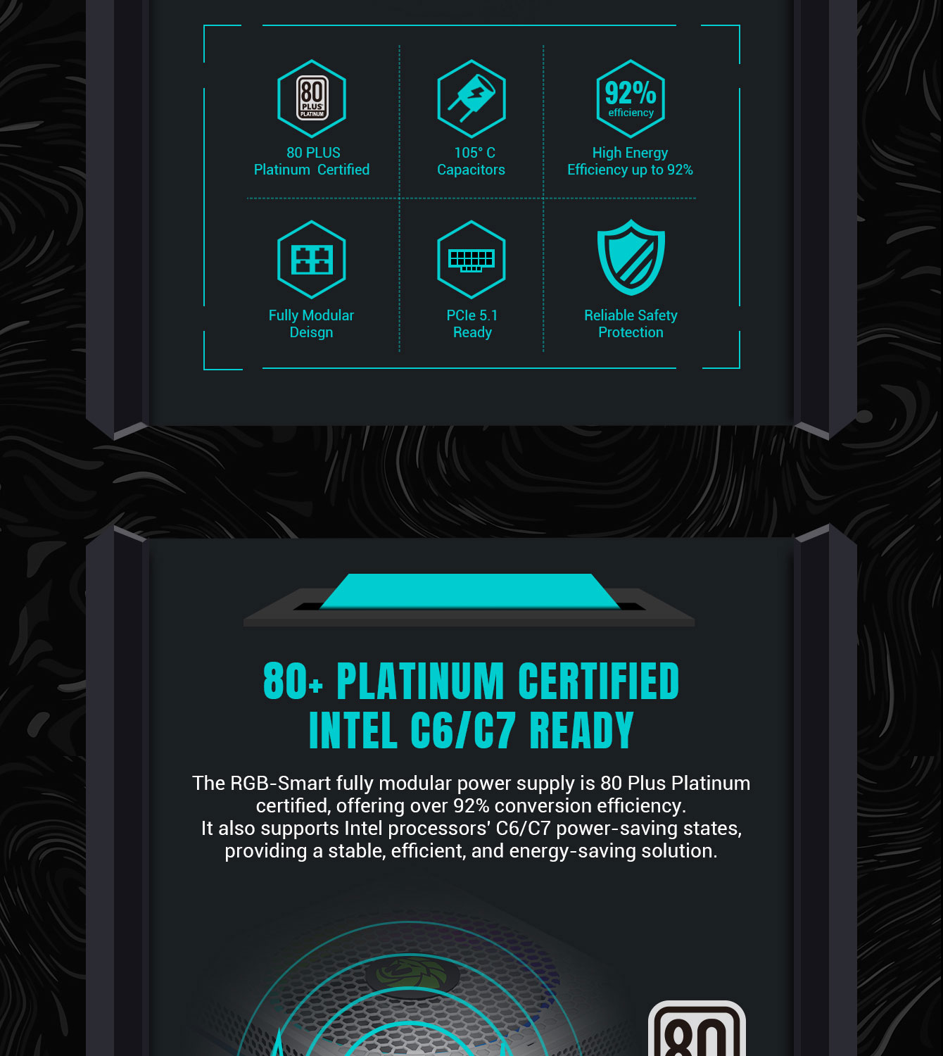 • Compatibility: Supports ATX 3.0/3.1, PCIe 5.0/5.1, 16-pin 12V-2*6 for latest GPUs.