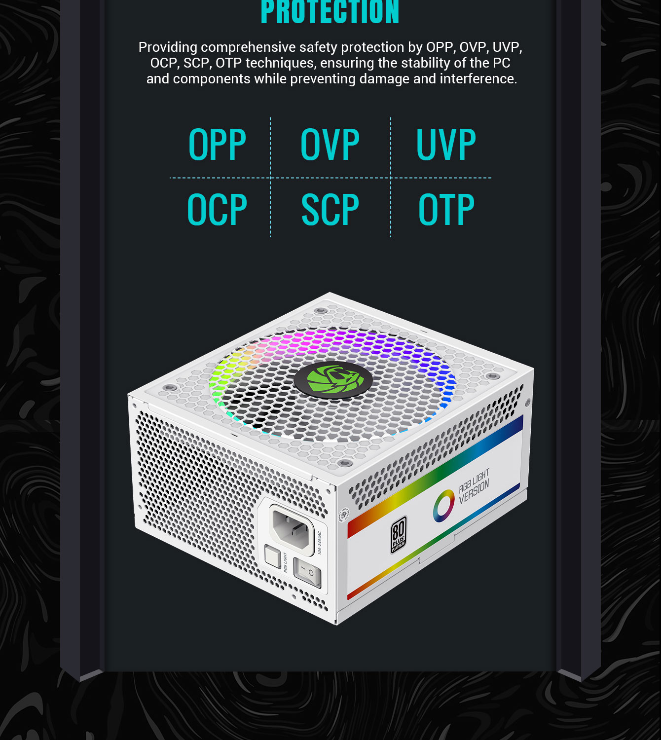 • Comprehensive Protection: OPP/OVP/UVP/SCP/OCP/SIP for stability and safety.