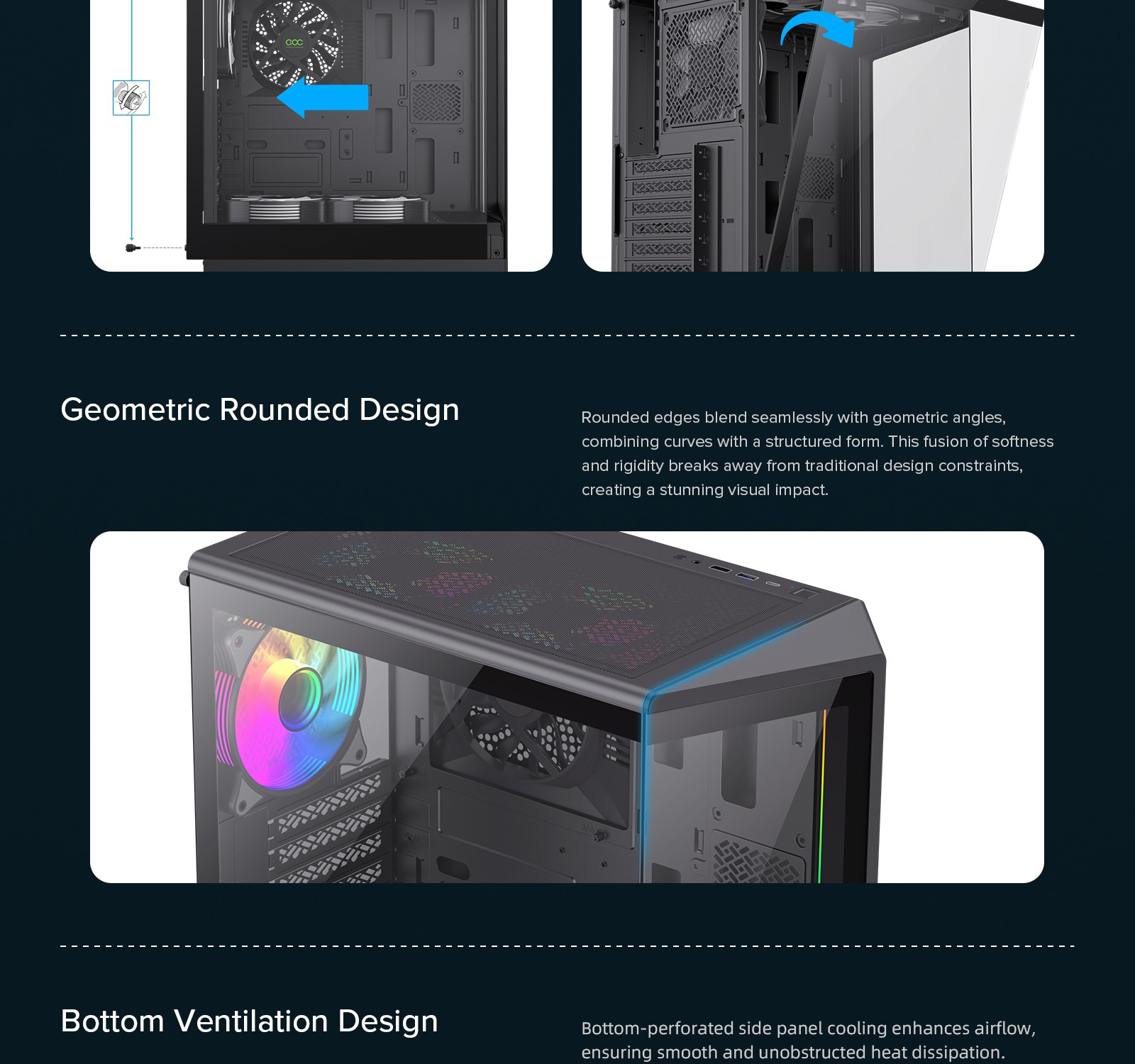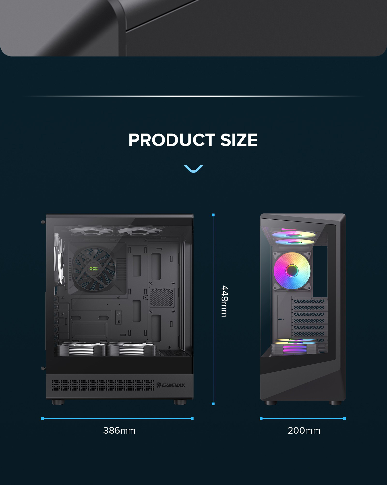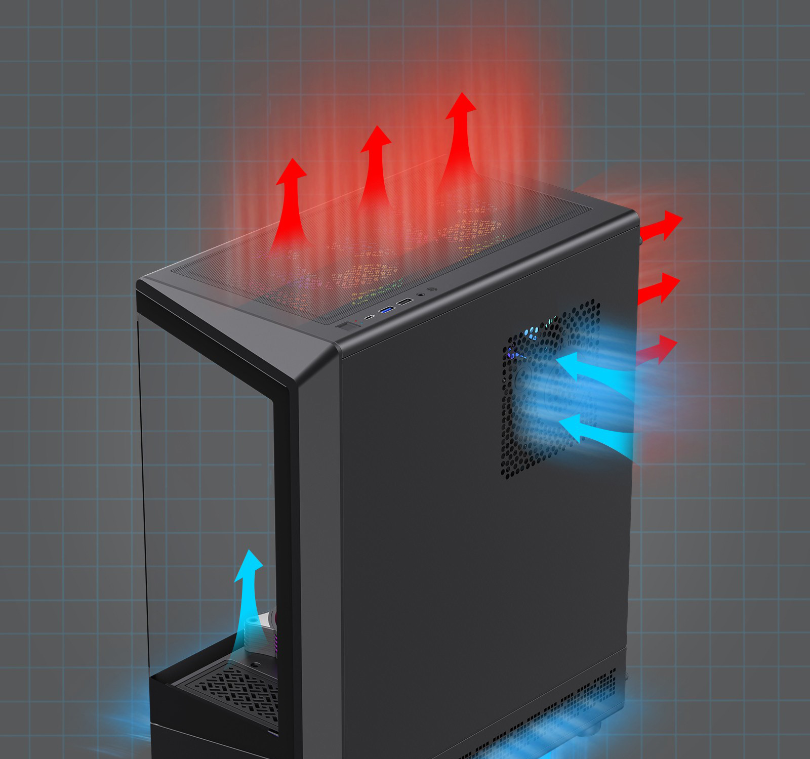 • 5 ARGB вентиляторов: Бесконечное свечение для захватывающего визуального эффекта.