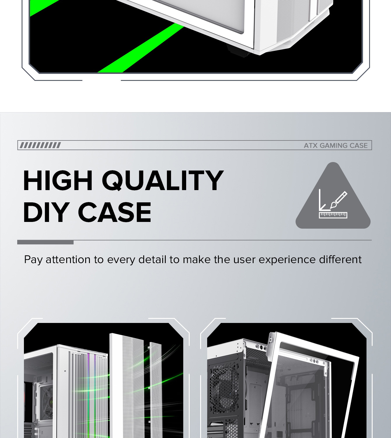 Precision 2 mid-tower gaming chassis, excellent performance, The upgraded detachable top plate solves the common problems of ordinary chassis on the market, satisfies the rapid installation and maintenance of your computer hardware, and improves the ease of installation of hardware accessories It is more convenient to install the radiator and fan