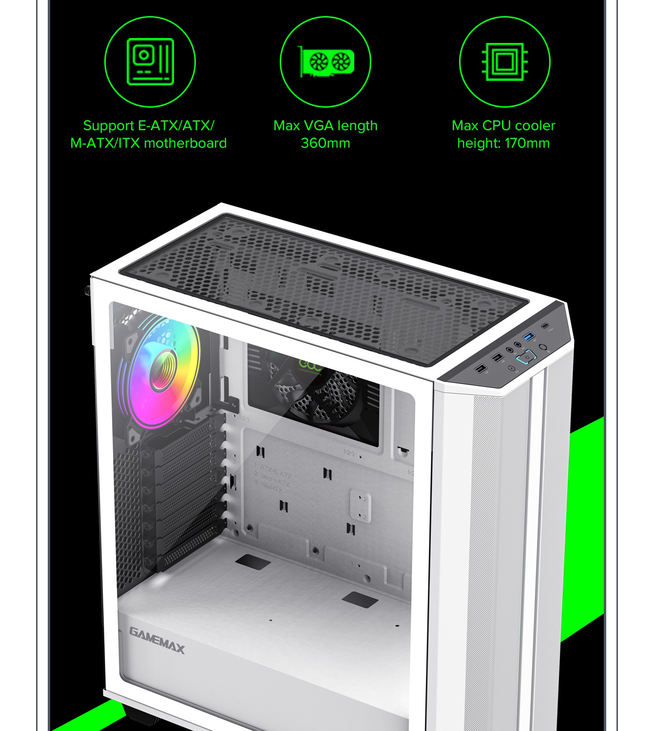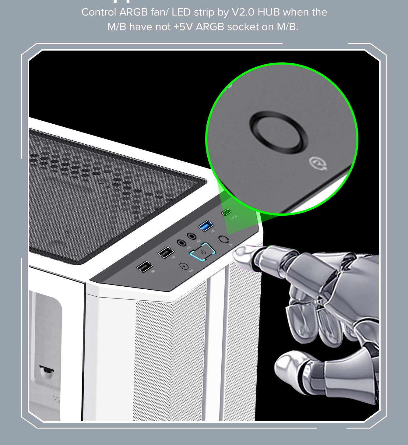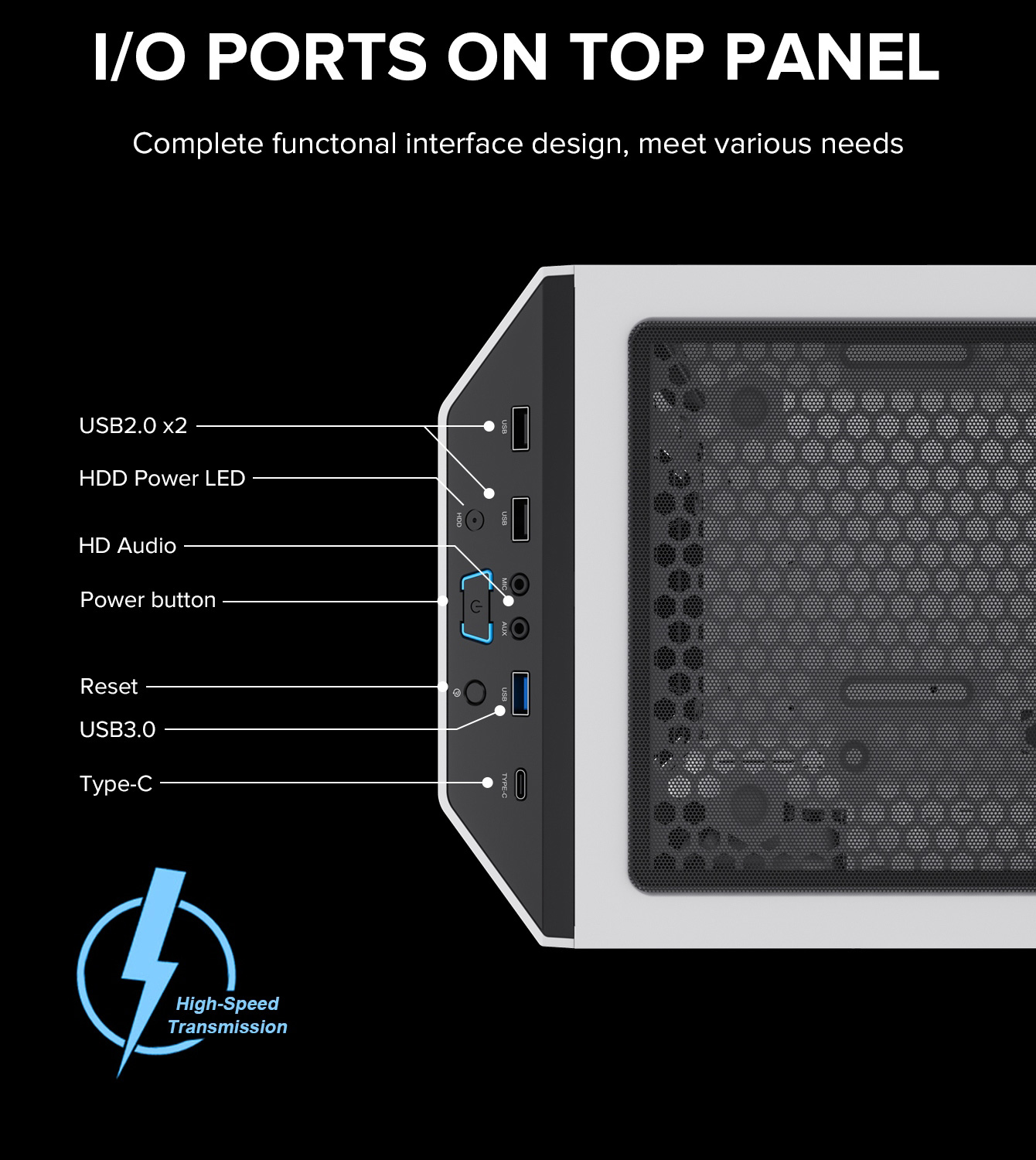 • Type-C is ready and the top ARGB button is easy to use, and the functional interface is fully designed to meet the needs of various fast data transmission