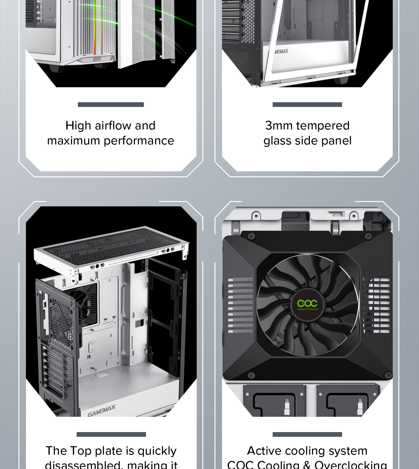 • COC (Cooling Overclocking) turbofan, T-shaped directional air duct, active cooling system, exclusive patented design