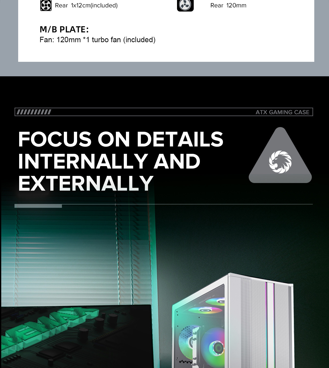 | Chassis | SPCC Rear:0.8mm, Left/right/Top/front:06mm,other:0.5mm | |