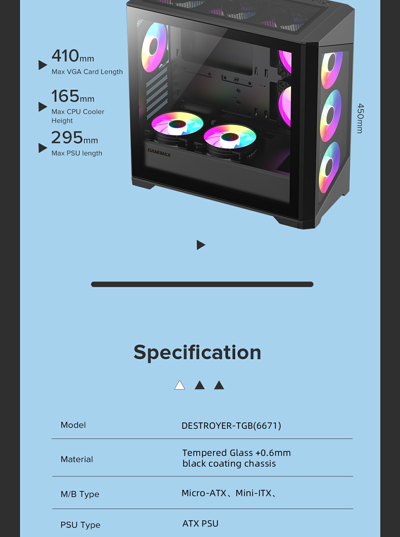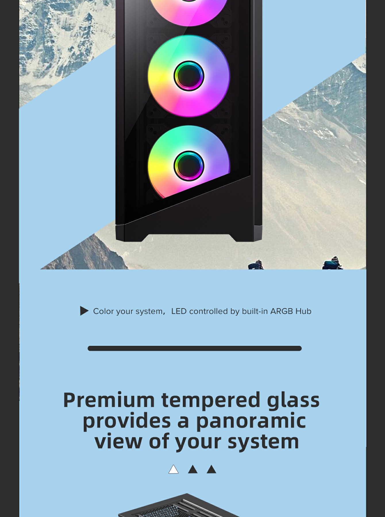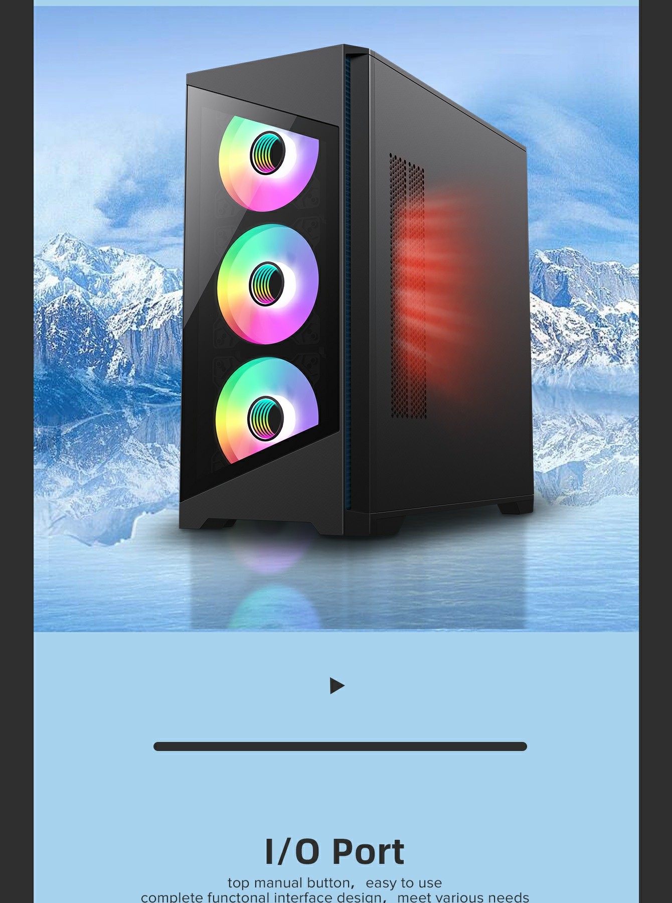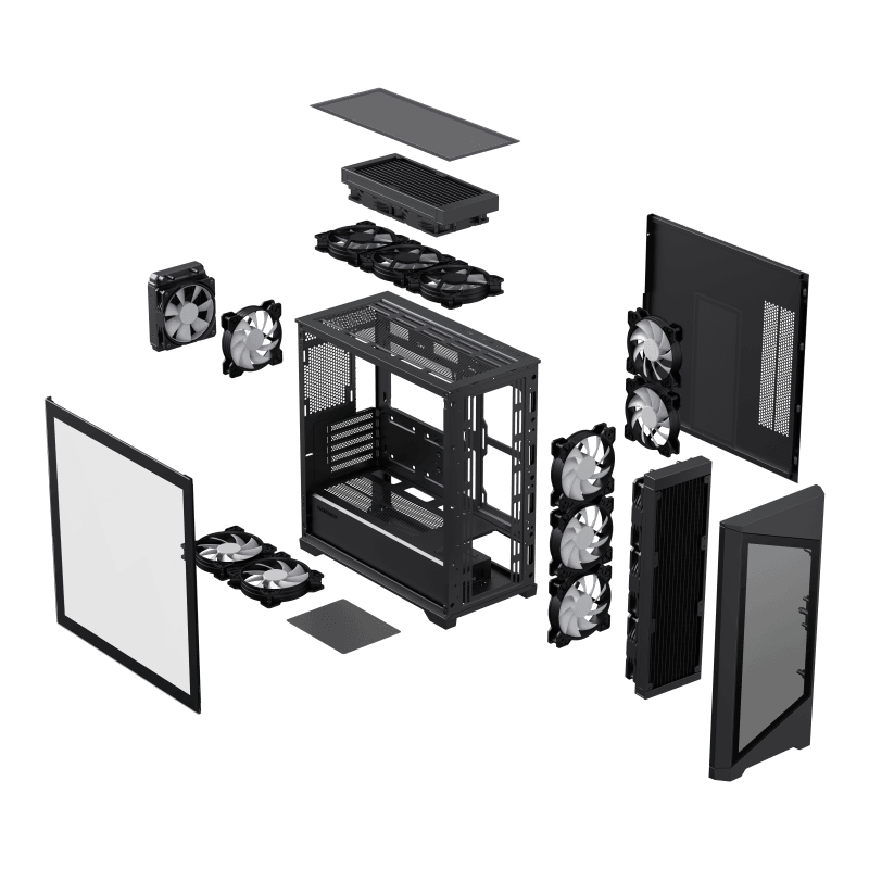 • Tempered Glass Design: Front and side tempered glass panels to showcase your components and ARGB lighting.