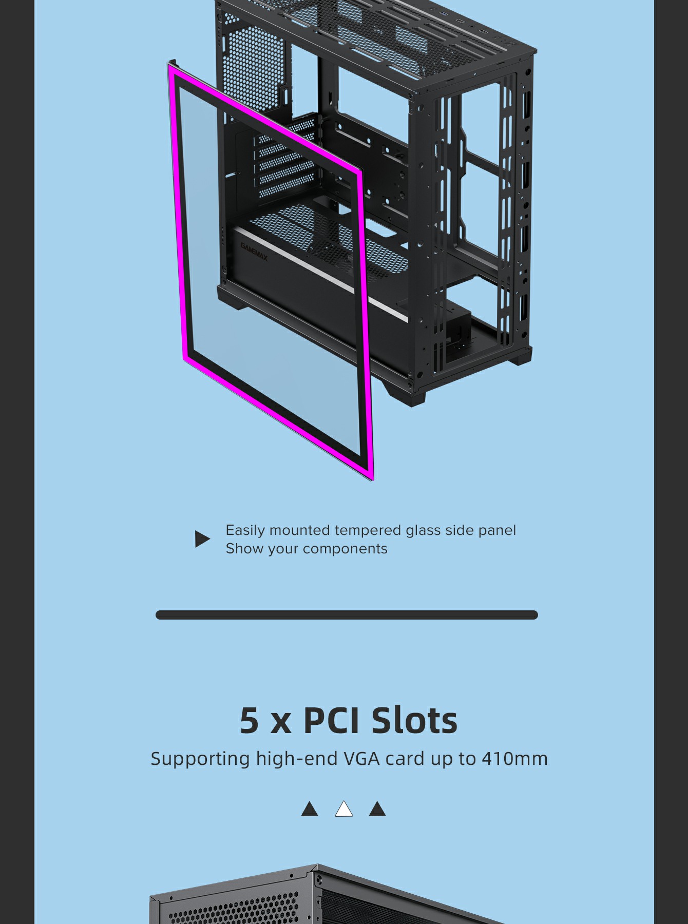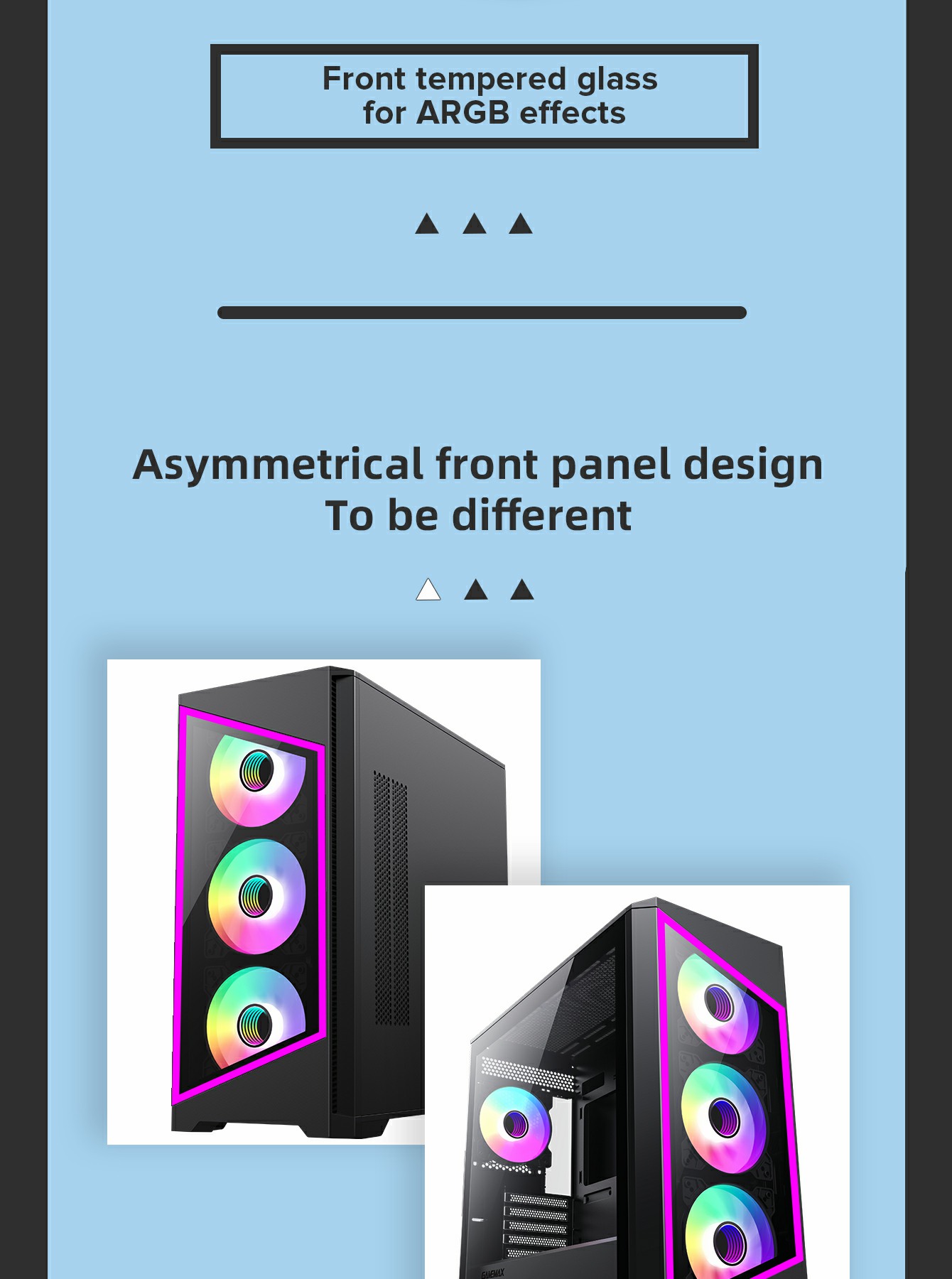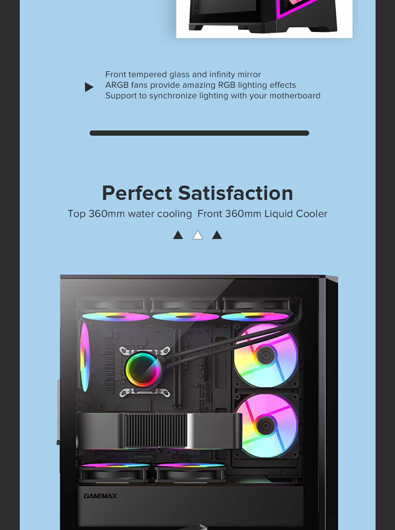 • Tempered Glass Design: Front and side tempered glass panels to showcase your components and ARGB lighting.