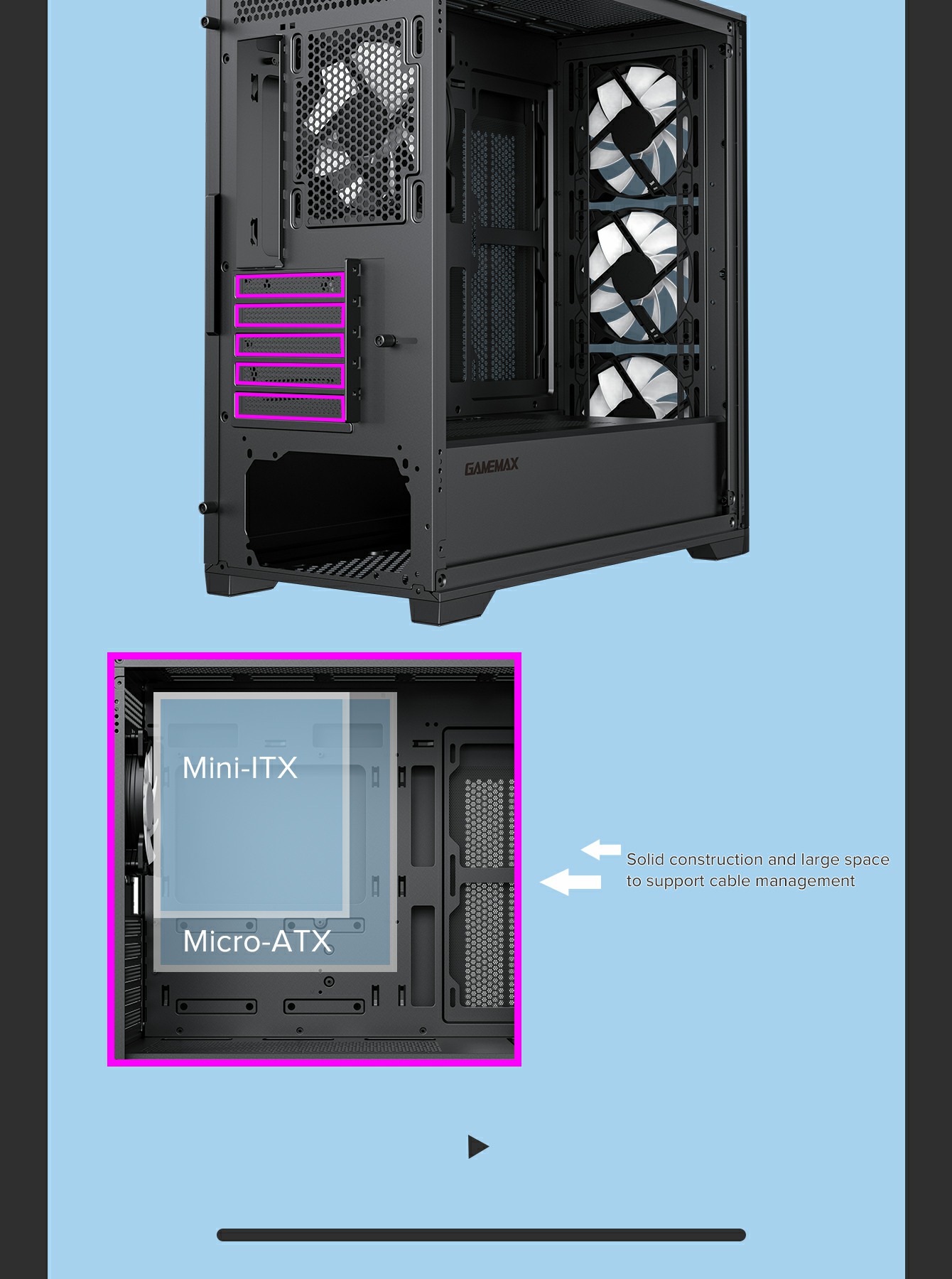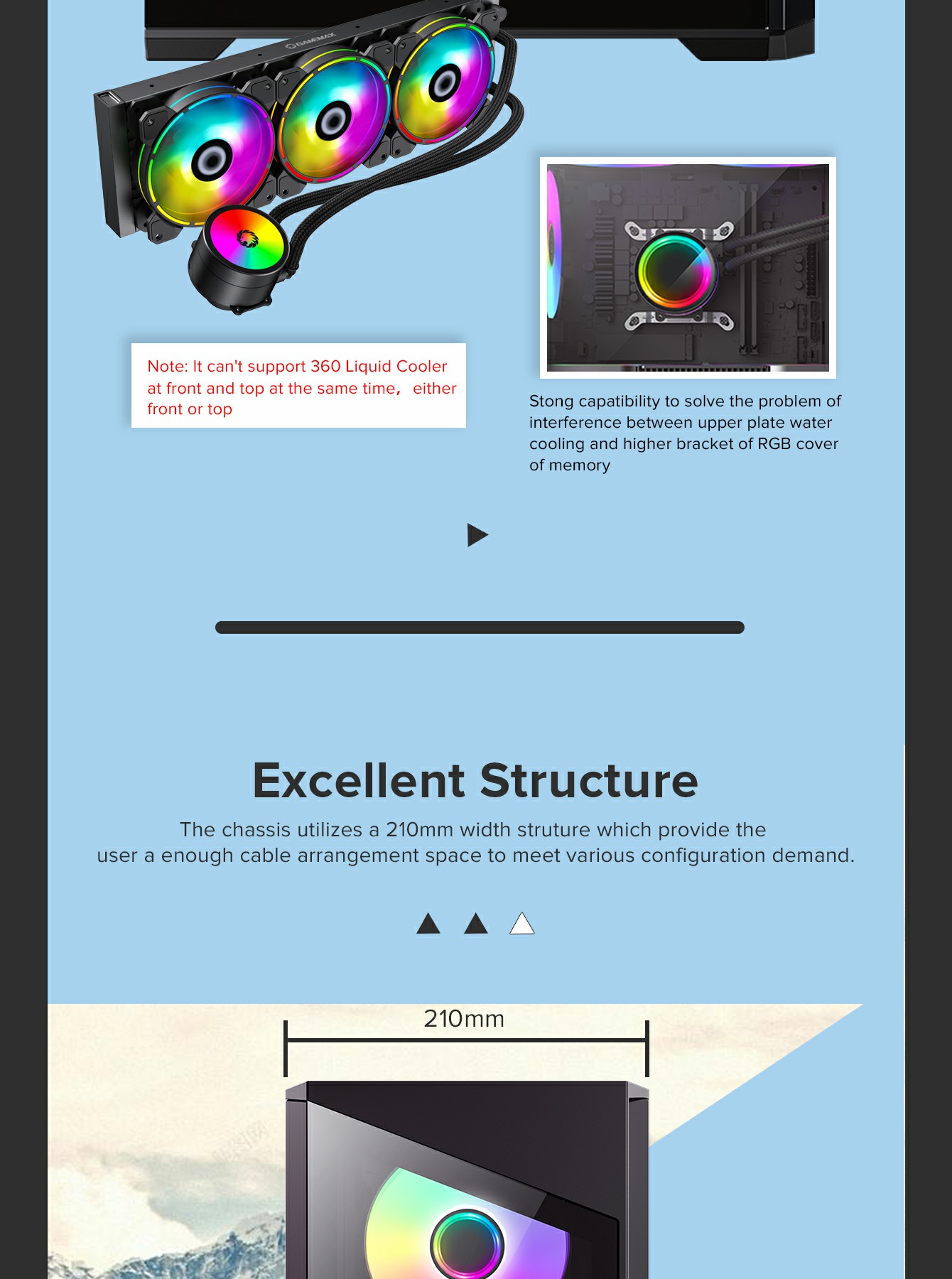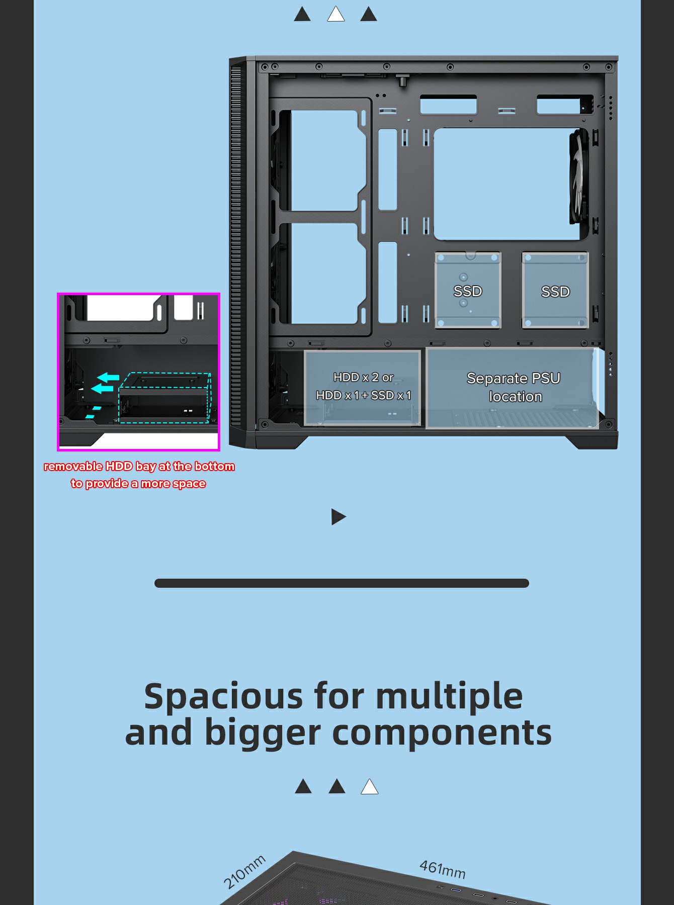 | SPS Length | up to 265mm(front cover w/o Water Cooling) | |
