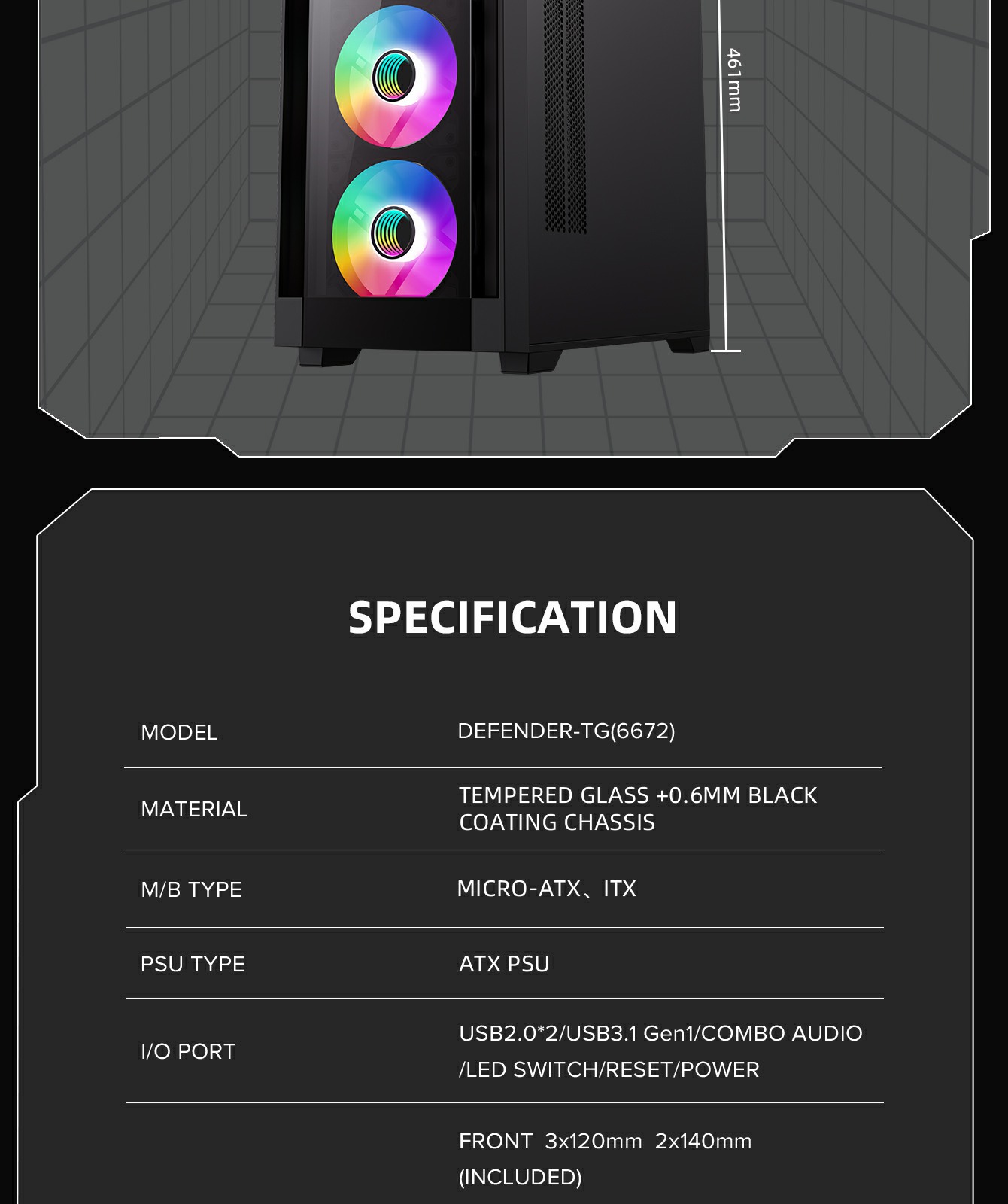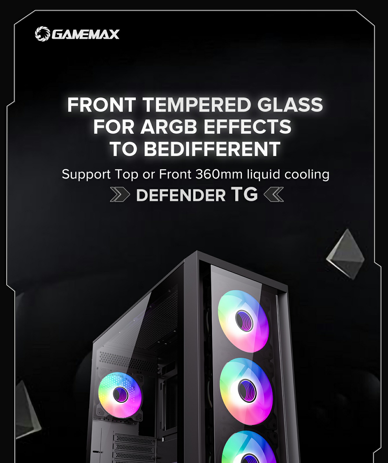 • Show Off Your Lights - DEFENDER TG with stylish tempered glass design showcases your PC components and ARGB lighting