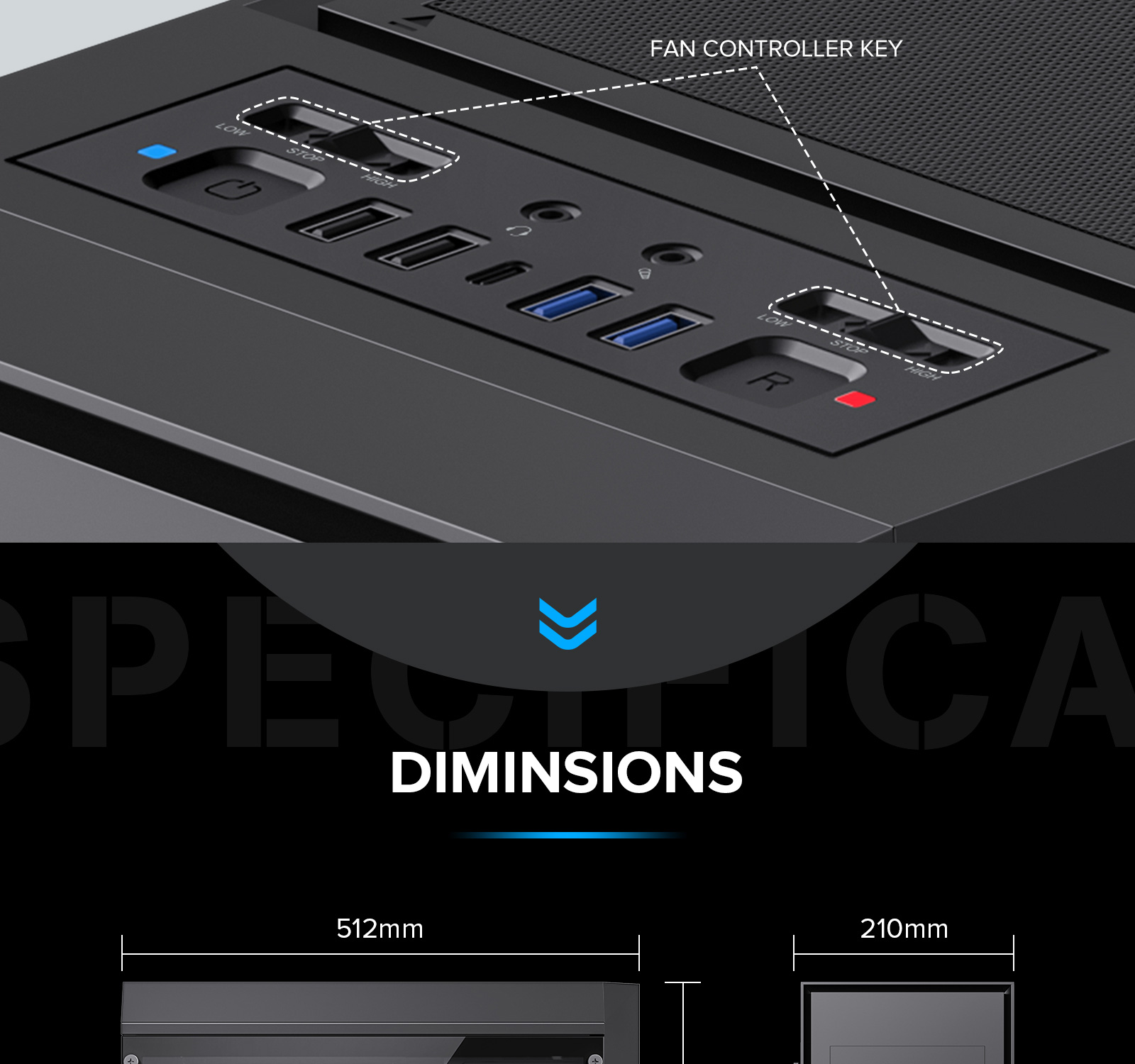 | Chassis | SPCC 0.8mm . Black painting interior | |